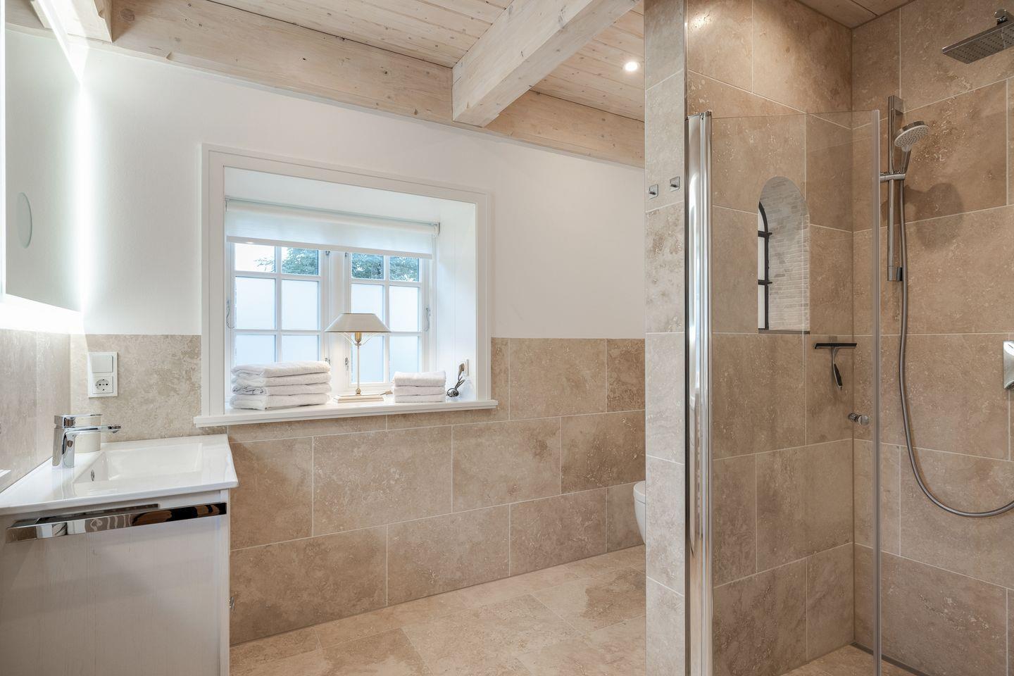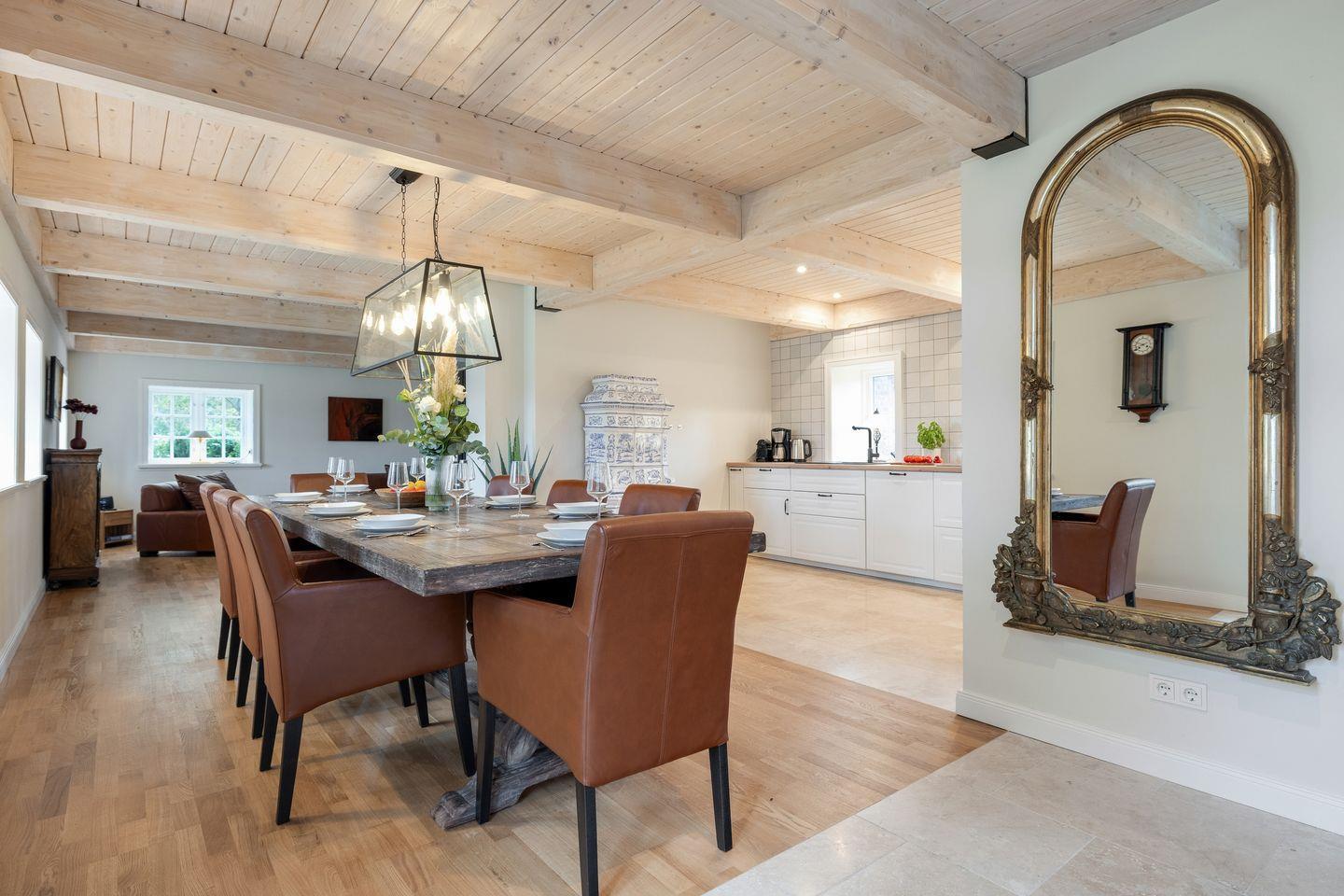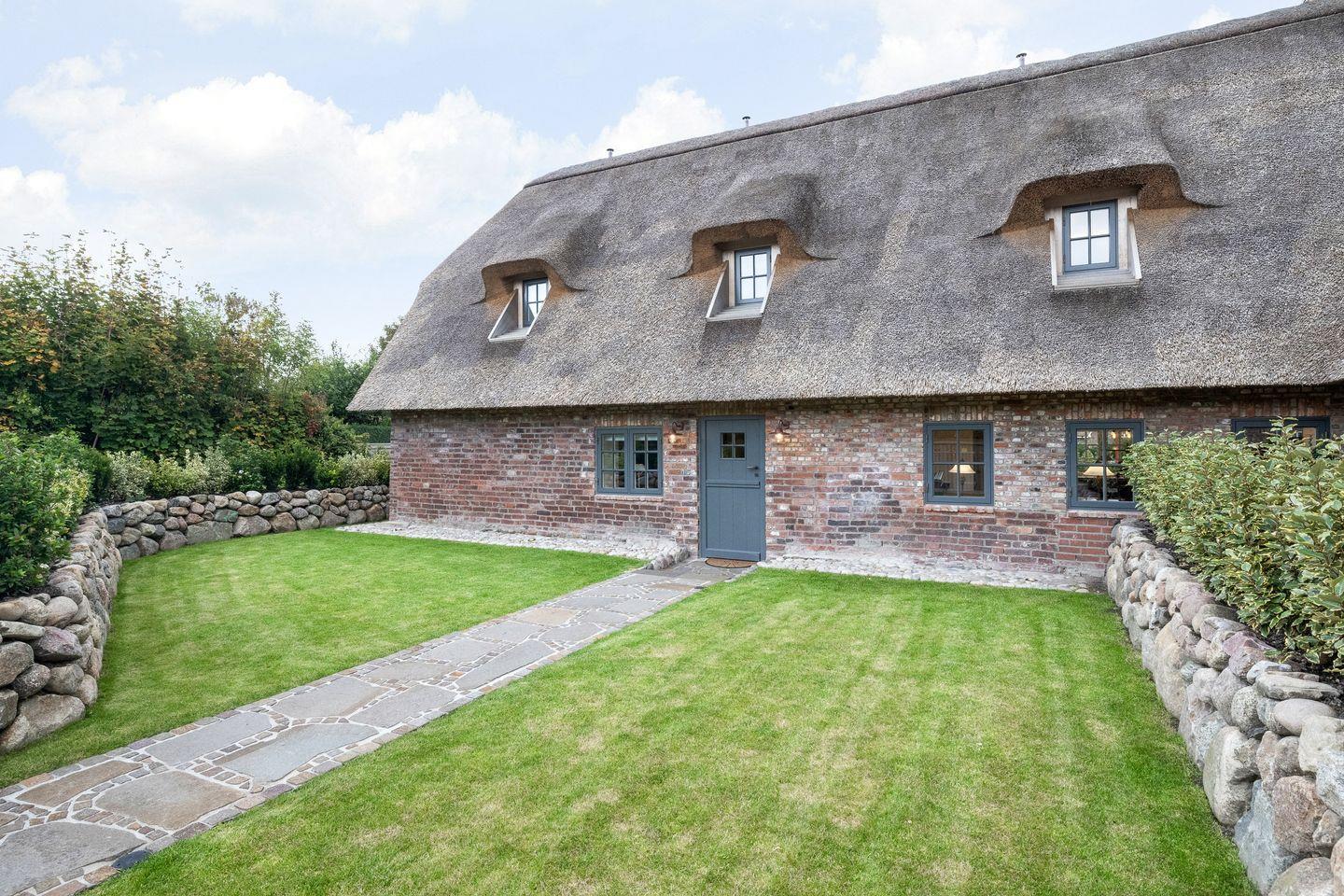 Ein Traum unter Reet! Dieses im Jahr 2025 vollständig sanierte ca. 200 m² große 5 Sterne Friesenhaus aus dem Baujahr 1745 für bis zu 7 Personen bietet Ihnen absolute Exklusivität im Ortskern Tinnums. Die Lage stellt den perfekten Ausgangspunkt dar, um sowohl die malerischen Tinnumer Wiesen zu erreichen als auch die Insel in alle Himmelsrichtungen zu erkunden. Im Erdgeschoss empfängt Sie ein lichtdurchfluteter, offener Wohn- und Essbereich samt voll ausgestatteter Landhausküche, die zum gemeinsamen Kochen und Verweilen einlädt. Ein Doppelschlafzimmer (200x200 cm) mit einem Bad en Suite sowie ein Gäste-WC finden Sie ebenfalls im Erdgeschoss. Das Obergeschoss beherbergt zwei weitere großzügige Doppelschlafzimmer (200x220 cm) inkl. moderner Einbauschränke, die genügend Stauraum für einen Sylturlaub bieten. Die Schlafzimmer verfügen jeweils über ein eigenes Tageslichtduschbad, wovon eins mit einer Sauna ausgestattet ist - der perfekte Ort, um zu entspannen. Für das Home Office eignet sich hervorragend das separate Zimmer inkl. großzügigem Schreibtisch. Dort steht ein Einzelbett (120x200 cm) für eine weitere Person zur Verfügung. Alle Schlafräume und das Wohnzimmer sind mit Smart-TVs ausgestattet, um Ihnen Unterhaltung und Komfort zu bieten. Die Südterrasse mit angrenzendem Garten und einem Strandkorb (saisonabhängig) lädt zu entspannten Stunden im Freien ein. Darüber hinaus stehen Ihnen WLAN, ein eigener PKW-Stellplatz sowie eine Waschmaschine und ein Trockner zur Verfügung. Haustiere sind hier herzlich willkommen, sodass auch Ihr vierbeiniger Begleiter sich wie zu Hause fühlen kann. Erkunden Sie tagsüber die charmante Insel Sylt und lassen Sie den Abend in gemütlicher Runde vor dem Kamin ausklingen.