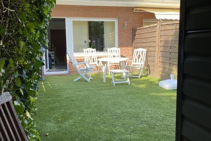 Vom Wohnraum aus gehen Sie direkt auf die Terrasse und in den Garten/ Rasen.