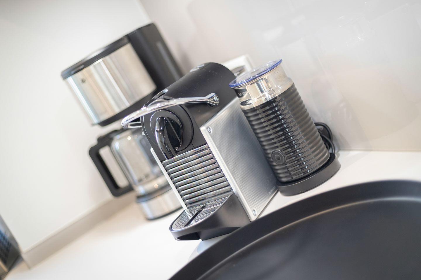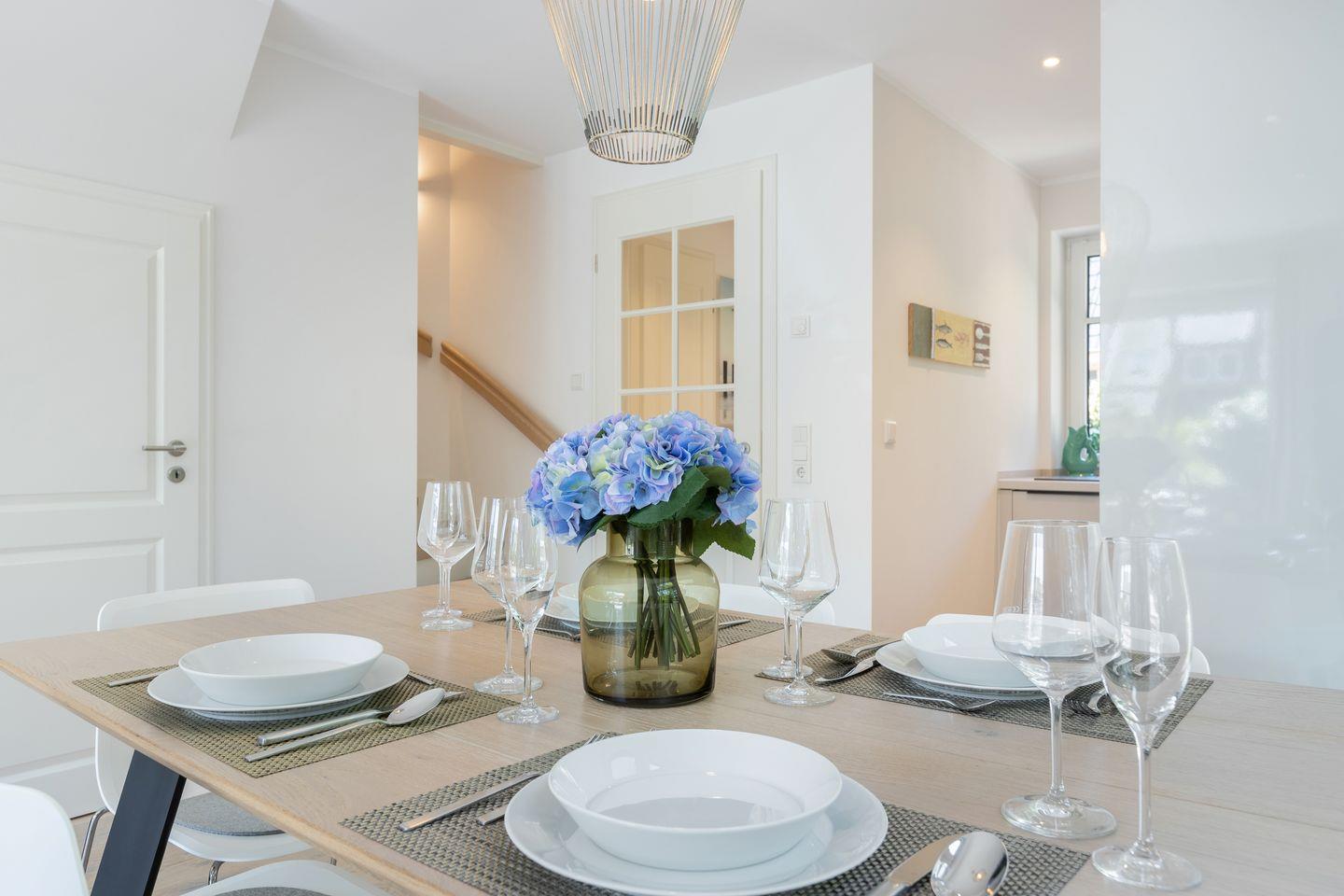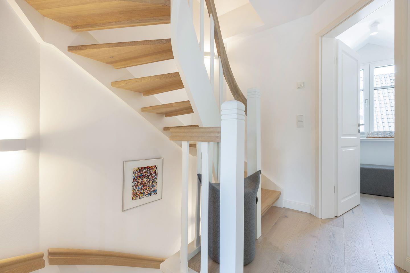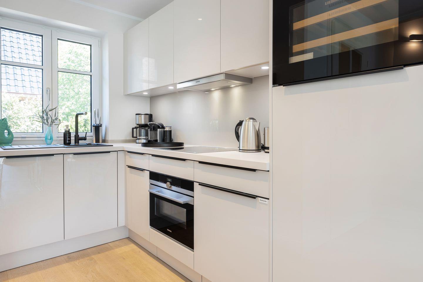 Im EG befindet sich die offene Küche (mit Backofen-Mikrowellen-Kombi, Induktionsherd, Filter- & Nespresso-Kaffeemaschine, Geschirrspüler und Weinschrank), der Wohnraum mit LG-Flat-TV, Bang & Olufsen Soundsystem, Gaskamin, WLAN und Gäste-WC. Eine Süd- und Ost-Terrasse jeweils mit hochwertigen Gartenmöbeln bestückt und Strandkorb (ca. Von April-Oktober) laden zum Verweilen ein.