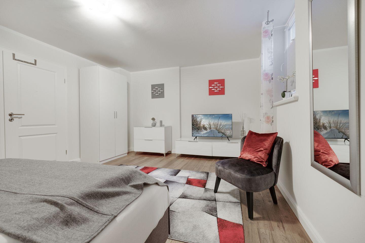 Im Untergeschoss des Hauses befindet sich ein Zimmer mit Doppelbett und Flatscreen-TV, sowie ein Badezimmer mit Dusche, Badewanne und WC. Außerdem finden Sie im Untergeschoss einen weiteren Raum mit Waschmaschine und Trockner. Das Hauptschlafzimmer des Hauses befindet sich im Obergeschoss und verfügt ebenfalls über ein Doppelbett und einen Flatscreen-TV sowie über einen eigenen Balkon. Auch auf dieser Ebene finden Sie außerdem ein weiteres Badezimmer mit Dusche und WC. Im Dachgeschoss des Hauses finden dann die Kinder ihr Paradies mit zwei Einzelbetten und einer gemütlichen Kuschelecke, die zum Toben und Lesen einlädt. Dem Familienurlaub auf der Insel Sylt steht also nichts mehr im Wege.