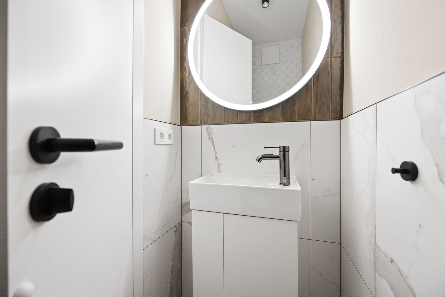 1. Das großzügige Badezimmer punktet mit einer ebenerdigen Regendusche, Sauna, Tageslicht, Fön und einem Handtuchwärmer.