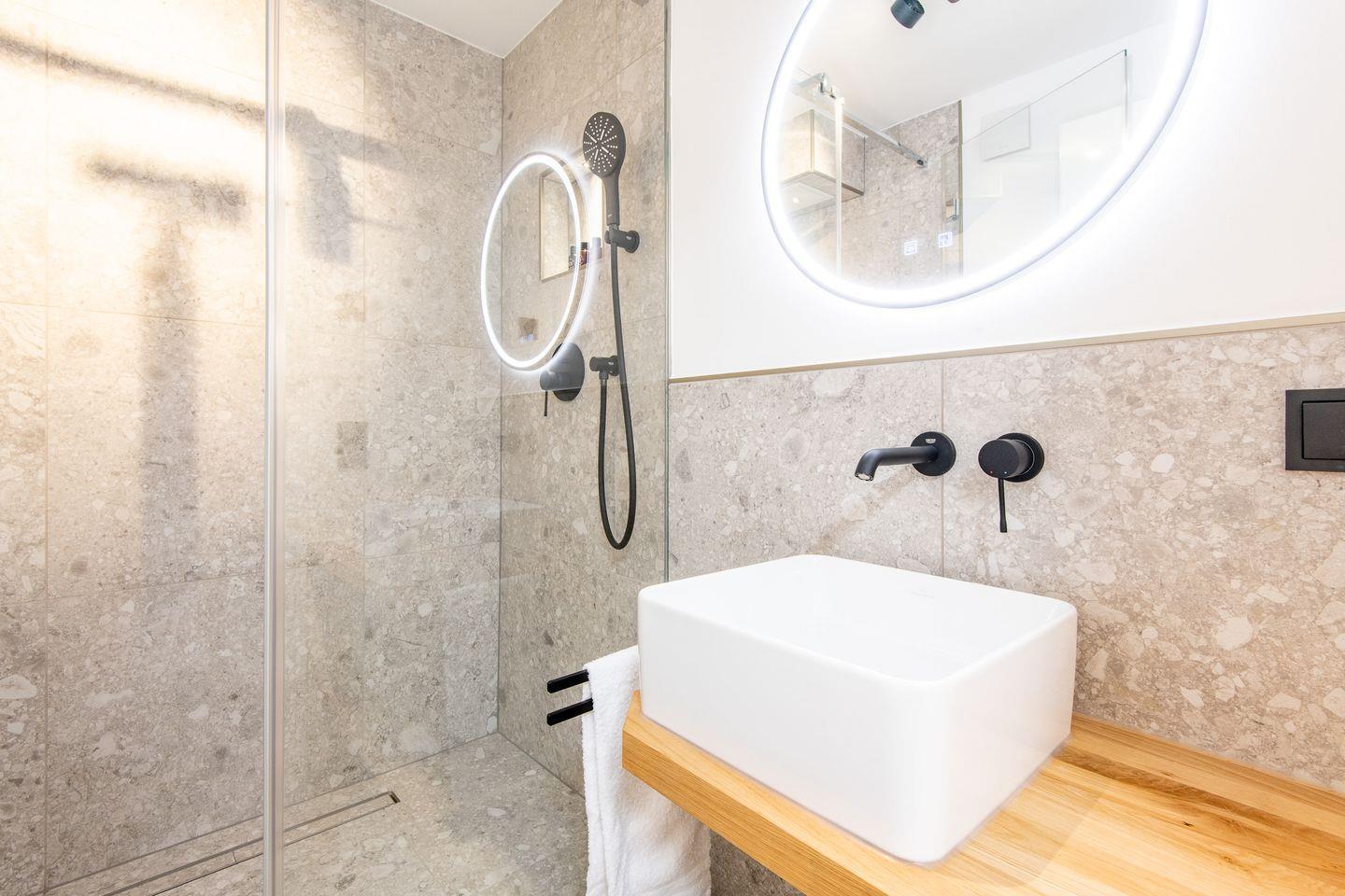 Das moderne Badezimmer ist mit einer komfortablen Dusche ausgestattet und ein Gäste-WC sorgt zusätzlich für Komfort. Highlight ist der gemeinschaftlich nutzbare Wellnessbereich mit Sauna und Fitnessgeräten, der Ihnen pure Entspannung bietet.