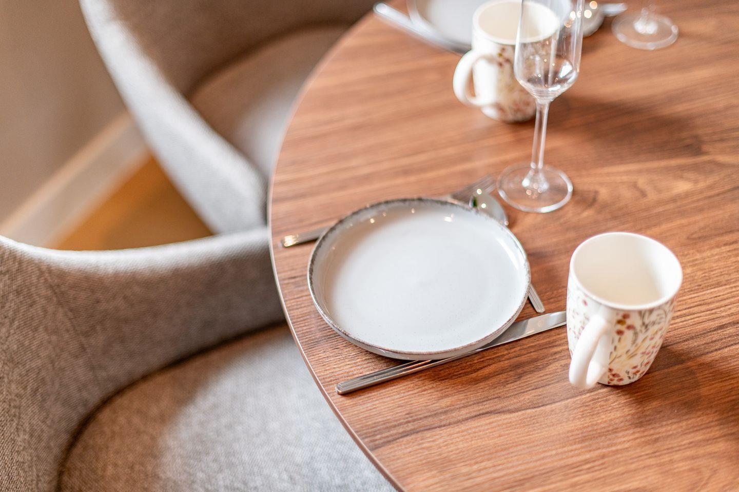 Die Wohnung besticht durch eine offene, moderne Küche, die perfekt ausgestattet ist. Hier können Sie gemeinsam mit Ihren Liebsten kochen und essen. Ausgestattet mit hochwertigen Geräten, darunter ein Herd, ein Backofen und eine Spülmaschine, macht die Küche das Zubereiten Ihrer Lieblingsgerichte zum Vergnügen.