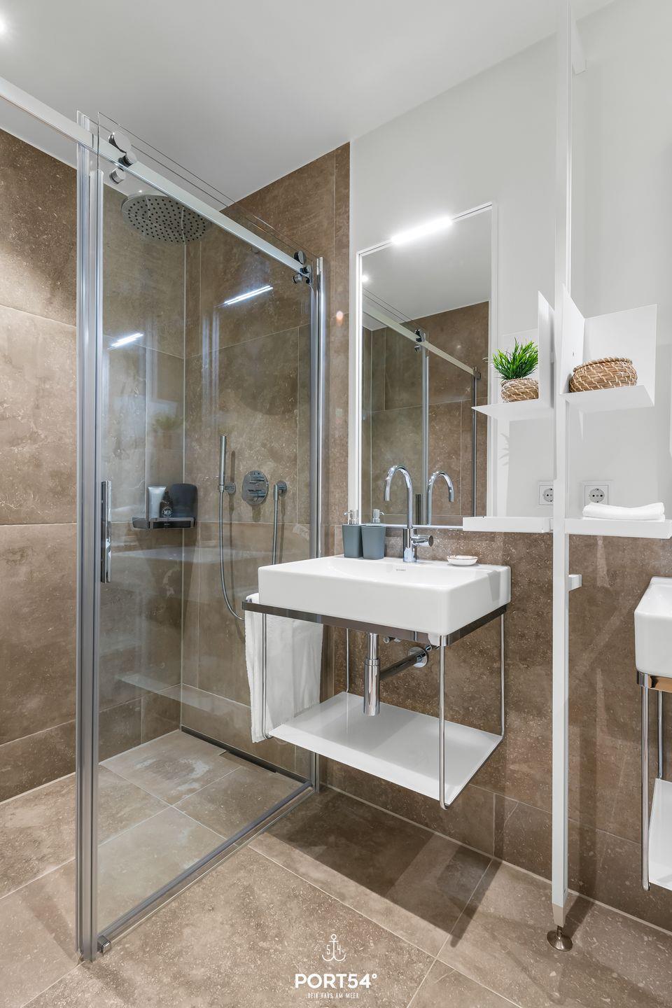 Das Luxus Maisonette Apartment bietet Platz für bis zu vier Personen im Erdgeschoss und Souterrain. Im Erdgeschoss erwartet Sie der offene Wohnbereich mit einem gemütlichem Sofa und großem Flachbild-TV, sowie die voll ausgestattete Küche und ein Gäste WC. Im Souterrain befinden sich die zwei Schlafzimmer welche jeweils mit einem großen Doppelboxspringbett (200x200 cm), einem Flachbild-TV und Verdunkelungsmöglichkeiten ausgestattet sind, perfekt für Ihre Nachtruhe. Dort finden Sie auch das exklusive Master-Bad mit großer Regendusche, zwei Waschbecken, Föhn und WC.