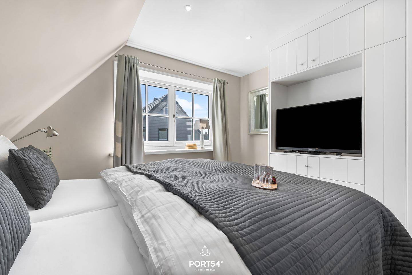 Drei der Schlafzimmer verfügen über je ein Doppelbett (180x200 cm) und einen Flachbild-TV, sowie Verdunkelungsmöglichkeiten, perfekt für eine angenehme Nachtruhe. Ein weiteres Schlafzimmer verfügt über 2 Einzelbetten, perfekt für unsere kleinen Gäste. Außerdem bieten wir für die kleinen Gäste ein Kinderbett und ein Hochstuhl an.