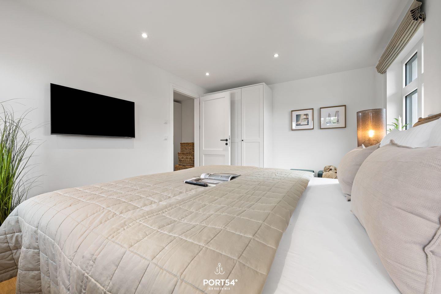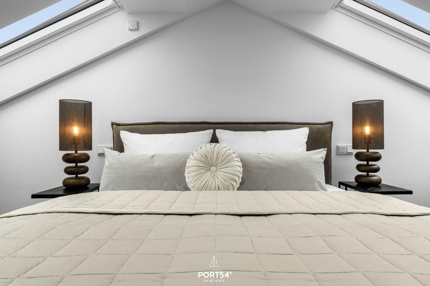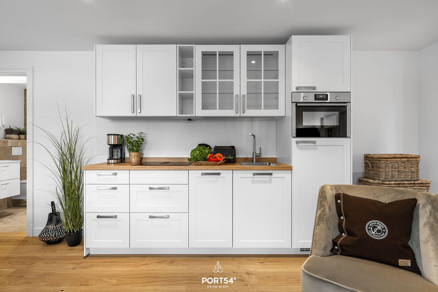 Auf 72 m² Wohnfläche im 1. Obergeschoss erwartet Sie moderner Komfort für bis zu vier Personen. Die offene Wohnküche ist hochwertig ausgestattet – mit Induktionskochfeld, Backofen, Spülmaschine, Kühlschrank mit Gefrierfach u.?v.?m. Zwei gemütliche Schlafzimmer (eines im Obergeschoss, eines im Dachgeschoss) bieten erholsame Nächte dank Verdunkelungsmöglichkeiten und bequemen Doppelbetten (beide 180x200 cm).