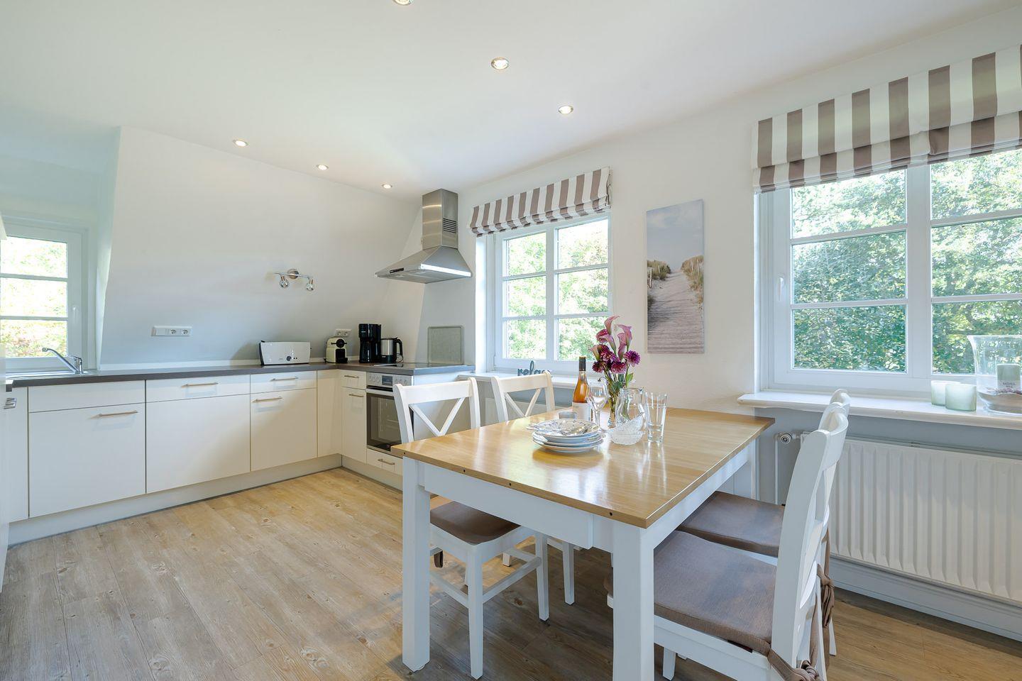 Helle Räume, eine hochwertige Ausstattung und liebevolle Details schaffen eine warme, einladende Stimmung. Der offene Wohnbereich mit gemütlicher Sitzecke und Essplatz ist der perfekte Ort, um nach einem erlebnisreichen Tag zur Ruhe zu kommen – sei es bei einem Glas Wein, einem guten Buch oder einem gemeinsamen Spieleabend. Die moderne Küche ist vollständig ausgestattet, sodass Sie jederzeit flexibel bleiben und Ihre Lieblingsgerichte auch im Urlaub genießen können.