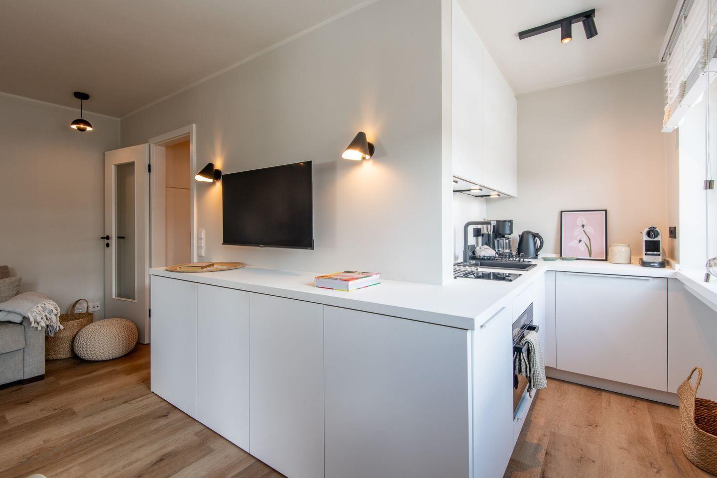 Die moderne, offene Küche ist voll eingerichtet und mit hochwertigen Geräten und Zubehör ausgestattet. Ob ein schneller Snack oder ein selbstgekochtes Abendessen – mit Induktionsherd, Nespresso-Kaffeemaschine und hochwertiger Ausstattung wird Kochen hier zum Vergnügen.