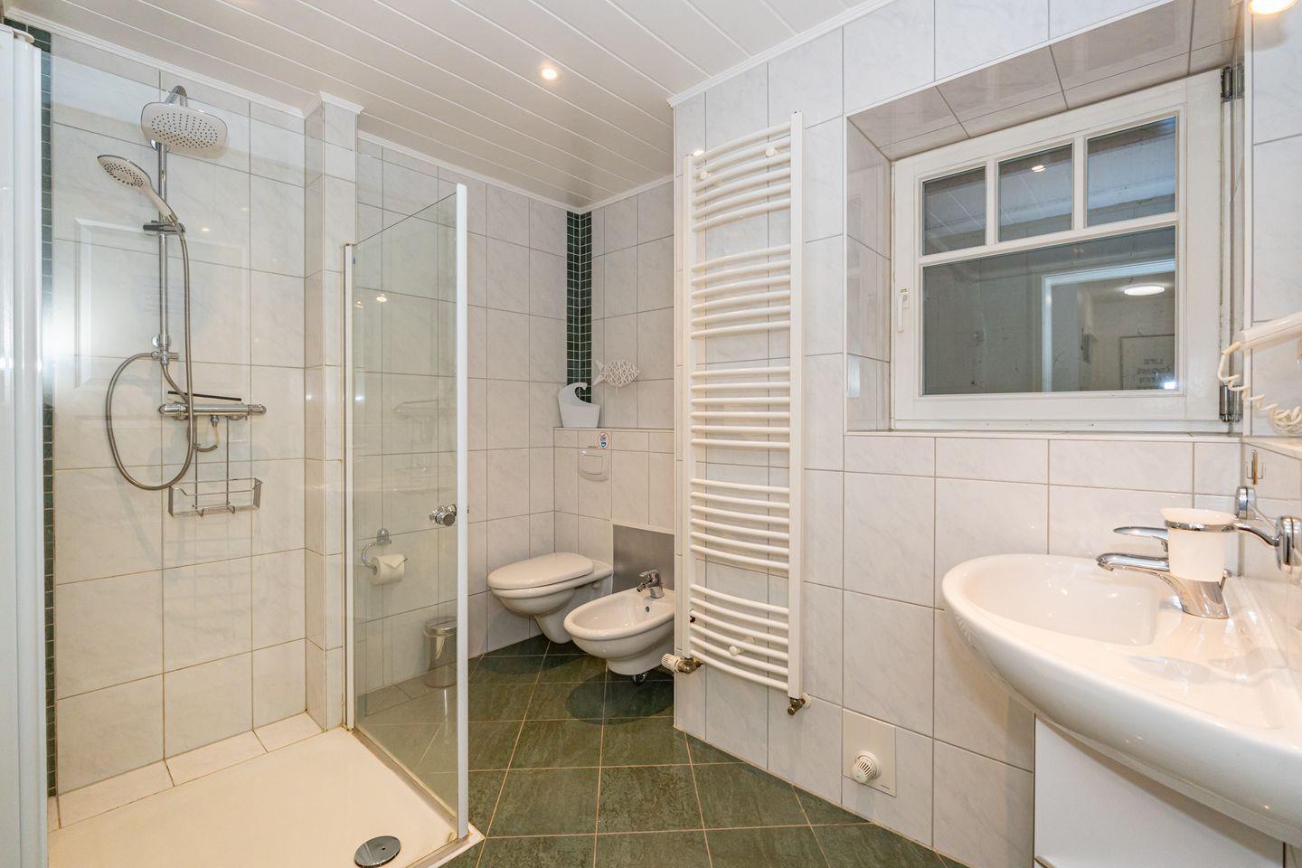 Die Ferienwohnung verfügt über zwei stilvoll ausgestattete Badezimmer. Eines der Bäder ist mit einer modernen Dusche und einer Badewanne ausgestattet, das andere bietet eine zusätzliche Dusche. Spiegel, Waschbecken und WC gehören selbstverständlich zur Ausstattung. Für entspannte Momente sorgt die zur Eigennutzung verfügbare private Sauna – genießen Sie Wellness und Erholung in Ihrer eigenen Ferienwohnung.