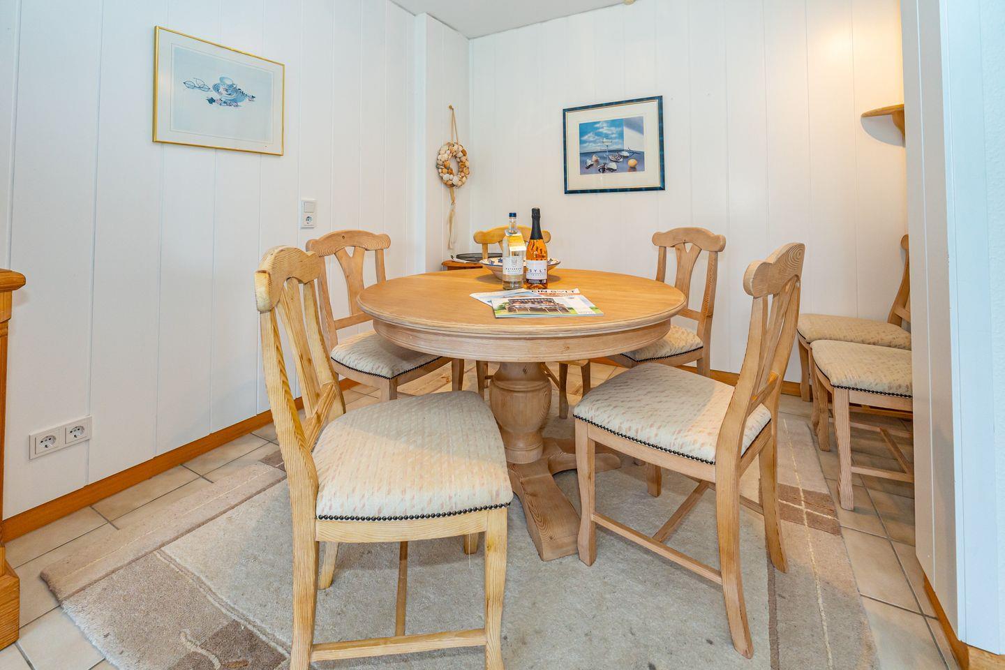 Die Ferienwohnung Rüm hart erstreckt sich über zwei Etagen auf 110qm. Der offene, einladende Wohnbereich ist mit einer Sofaecke, einem Essbereich und einem TV ausgestattet. Von hier aus haben Sie Zutritt zur Terrasse mit Gartenmöbeln (saisonal). Die geschlossene Küche lässt keine Wünsche offen. Sie ist ausgestattet mit einem Ceranherd, Backofen, Kühlschrank mit Gefrierfach, Geschirrspüler, Kaffeefiltermaschine, Wasserkocher, Toaster einen Esstisch. Ebenfalls im Erdgeschoss befindet sich ein Badezimmer mit WC, Waschbecken und Badewanne. Über eine Treppe gelangen Sie ins Souterrain wo sich zwei Schlafzimmer befinden. Das eine Schlafzimmer verfügt über 3 Schlafplätze (1 Doppelbett und 1 Einzelbett), TV und Kleiderschrank und das andere Schlafzimmer verfügt über 2 Schlafplätze (1 Doppelbett) und Kleiderschrank. Auf dieser Ebene befindet sich ein Badezimmer mit WC, Waschbecken und Dusche. Für längere Aufenthalte oder bei Bedarf nutzen Sie die gemeinschaftlich zugängliche Waschmaschine und den Trockner. Zu der Wohnung gehört ein PKW-Stellplatz.