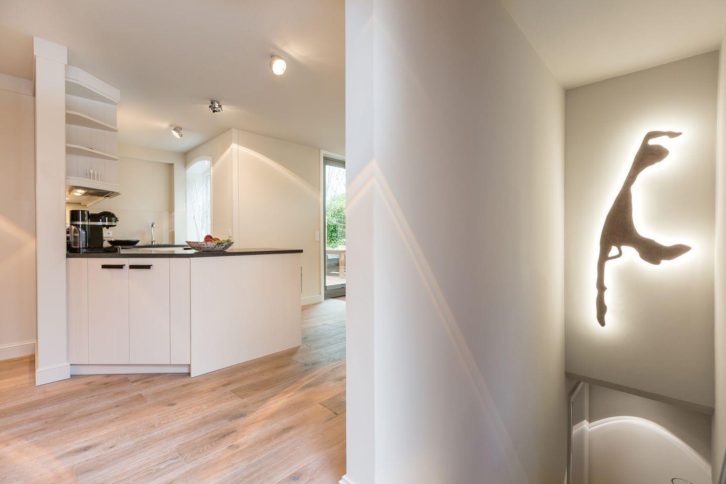 Das großzügige Appartement erstreckt sich über zwei Ebenen und verbindet Behaglichkeit mit Premiumqualität. Schon beim Betreten spürt man die Harmonie von Tradition und Moderne: edle Eichendielenböden mit integrierter Fußbodenheizung, exklusive Tischlereinbauten und ausgewählte Designleuchten schaffen ein stilvolles Ambiente. Große Glasfronten öffnen den Blick in den privaten Garten mit Terrasse, Liegen und Strandkorb – ein Ort, an dem Sie Ruhe und Privatsphäre in vollen Zügen genießen können.