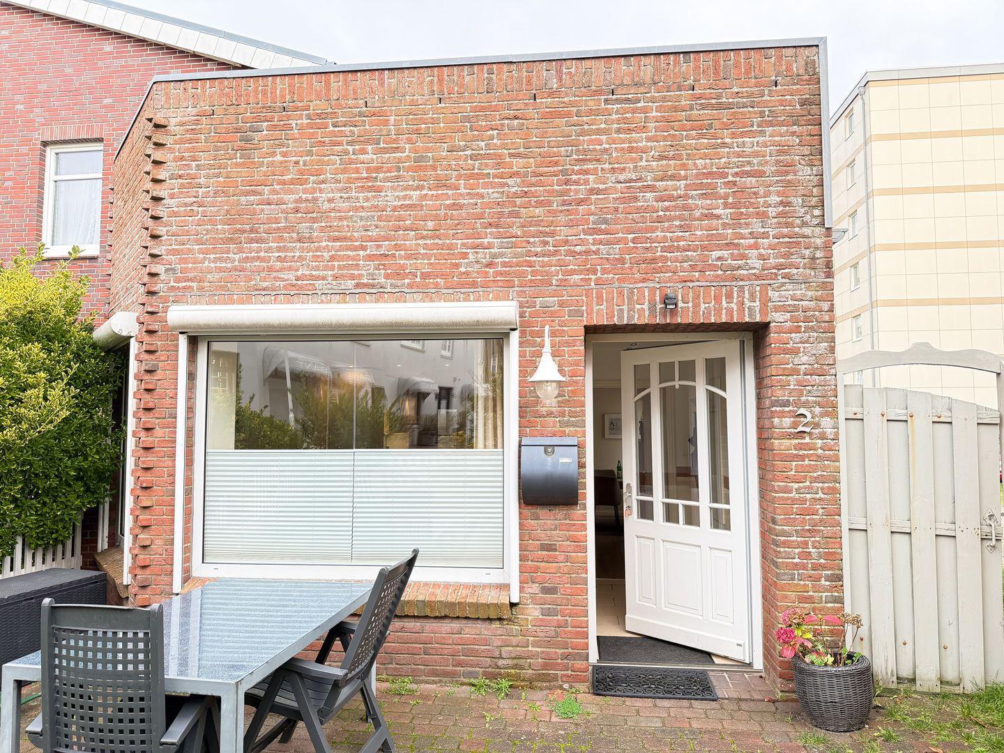 Im Außenbereich erwartet Sie eine eigene Terrasse mit Gartenmöbeln sowie Zugang zum gepflegten Garten. Hier können Sie erholsame Stunden im Freien verbringen oder einen ereignisreichen Tag an der frischen Nordseeluft ausklingen lassen. Ihr Fahrzeug parken Sie auf dem hauseigenen, kostenfreien Parkplatz.