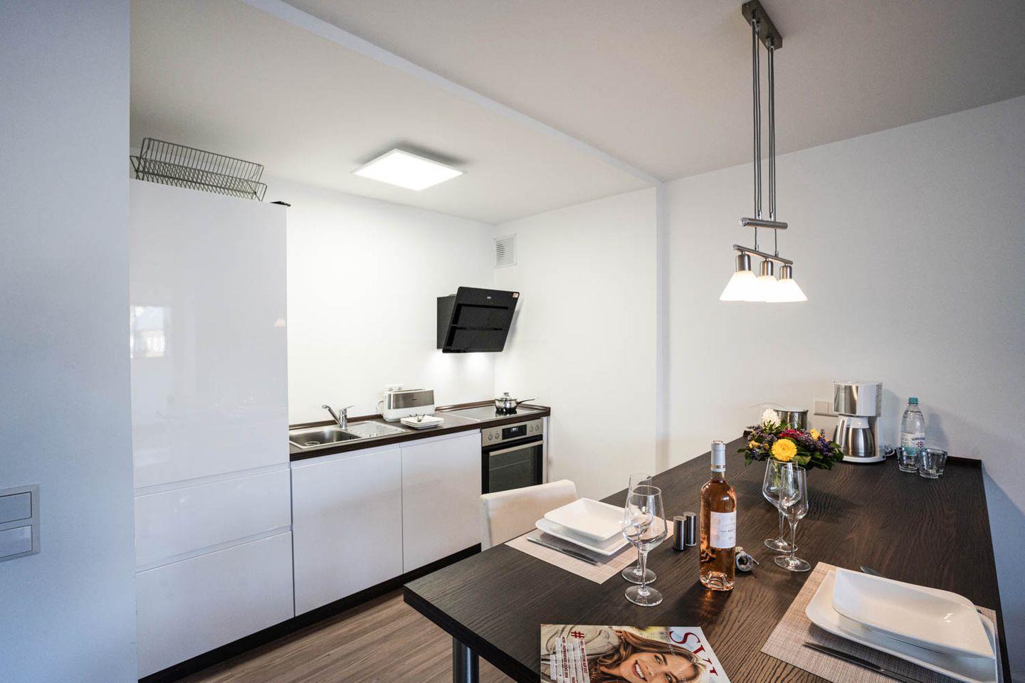 Die vor Kurzem renovierte und mit klarem, edlen Design eingerichtete 2-Zimmer-Wohnung in dieser Anlage ist perfekt für Zwei, verfügt über eine kleine, geschmackvolle offene Küche mit Tresen und coolen Barhockern, die in den Wohnbereich mit Eck-Couch übergeht. Ein Balkon macht dieses attraktive Angebot vom Kaliber „kleiner Geheimtipp“ komplett, das nur unterschätzt, wer nicht genauer hinschaut.