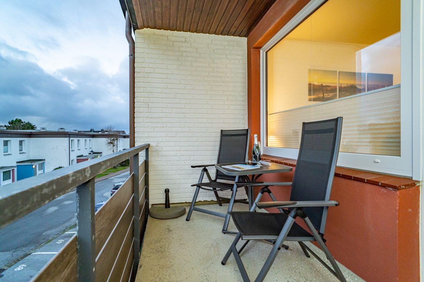 Meerblau, schickes Grau, strahlendes Weiß und maritime Holzelemente dominieren seit der vor Kurzem erfolgten Renovierung, und diese Perle bringt einiges mit, was sie besonders beliebt macht. Da wäre zunächst die wirklich praktische Ausstattung, zu der sogar eine Waschmaschine gehört, genauso wie ein Blu-Ray-Player und der Privatparkplatz. Dann ist die Lage in Alt-Westerland etwas für Kenner: Von hier aus ist die Innenstadt nur einen kleinen Fußweg entfernt und trotzdem geht es in der Gartenstraße eher ruhig zu. Und dann gehört auch noch ein Westbalkon dazu, der zu genüsslichen Sonnensitzungen am Nachmittag einlädt, vom guten Preis-Leistungsverhältnis ganz zu schweigen.