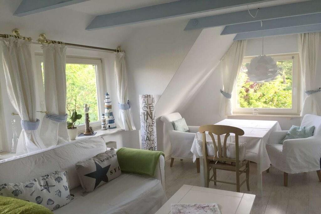Den romerska semesterlägenheten väntar dig i Tinnum, hjärtat av ön Sylt. Lägenheten är mycket rymlig, fördelad på två plan och har ett separat, rymligt kök. Oavsett om ni är ett par med en hund eller en familj med barn kommer ni att känna er som hemma här, eftersom den bekväma och tysta lägenheten bekvämt rymmer 2-3 personer. Det finns också en sittgrupp med en solstol och bord i den lilla anlagda trädgården, där du kan njuta av varje solstråle. Den romerska semesterlägenheten ser fram emot ditt besök!
