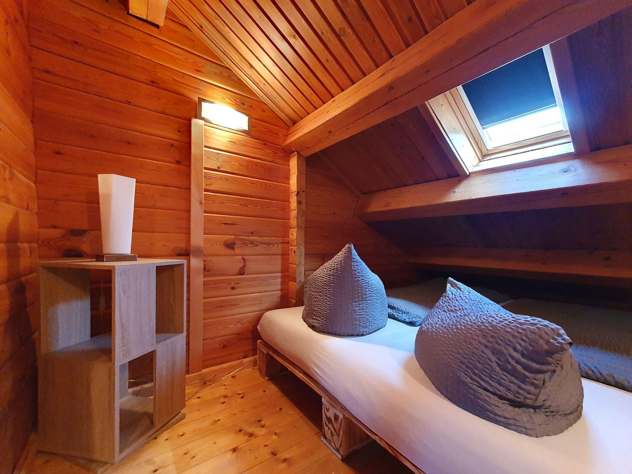 Unser Ferienhaus bietet 2 Elternschlafzimmer mit je einem Bett 180 cm x 200 cm, 1 Kinderzimmer unterm Dach mit Fenster und einem Doppelbett 160 cm x 200 cm und Zugang vom Elternschlafzimmer über eine relativ steile Treppe, 1 Kinderschlafzimmer unterm Dach ohne Fenster mit einem Doppelbett 180 cm * 200 cm und Fernseher, 1 geräumiges Wohnzimmer, 1 großzügiger Essbereich, 1 offene Küche, Herd mit Ceranfeld und Backofen, Mikrowelle, Toaster, Wasserkocher, Filterkaffeemaschine und Geschirrspüler, 1 Vollbad, 1 Duschbad mit Waschmaschine, 1 lichtdurchfluteter Wintergarten, Außenterrasse mit Gartenmöbeln und Grill, Carport
