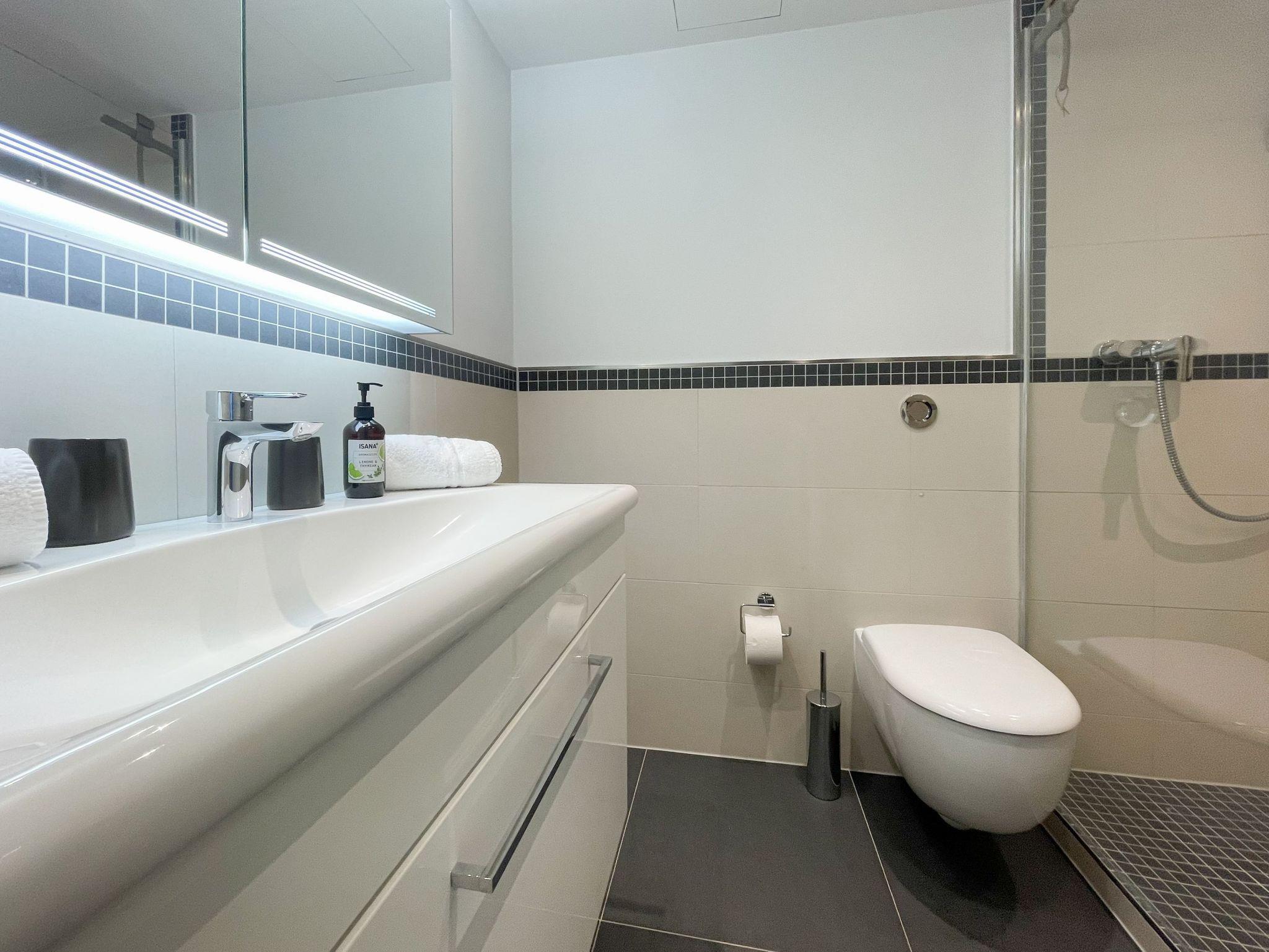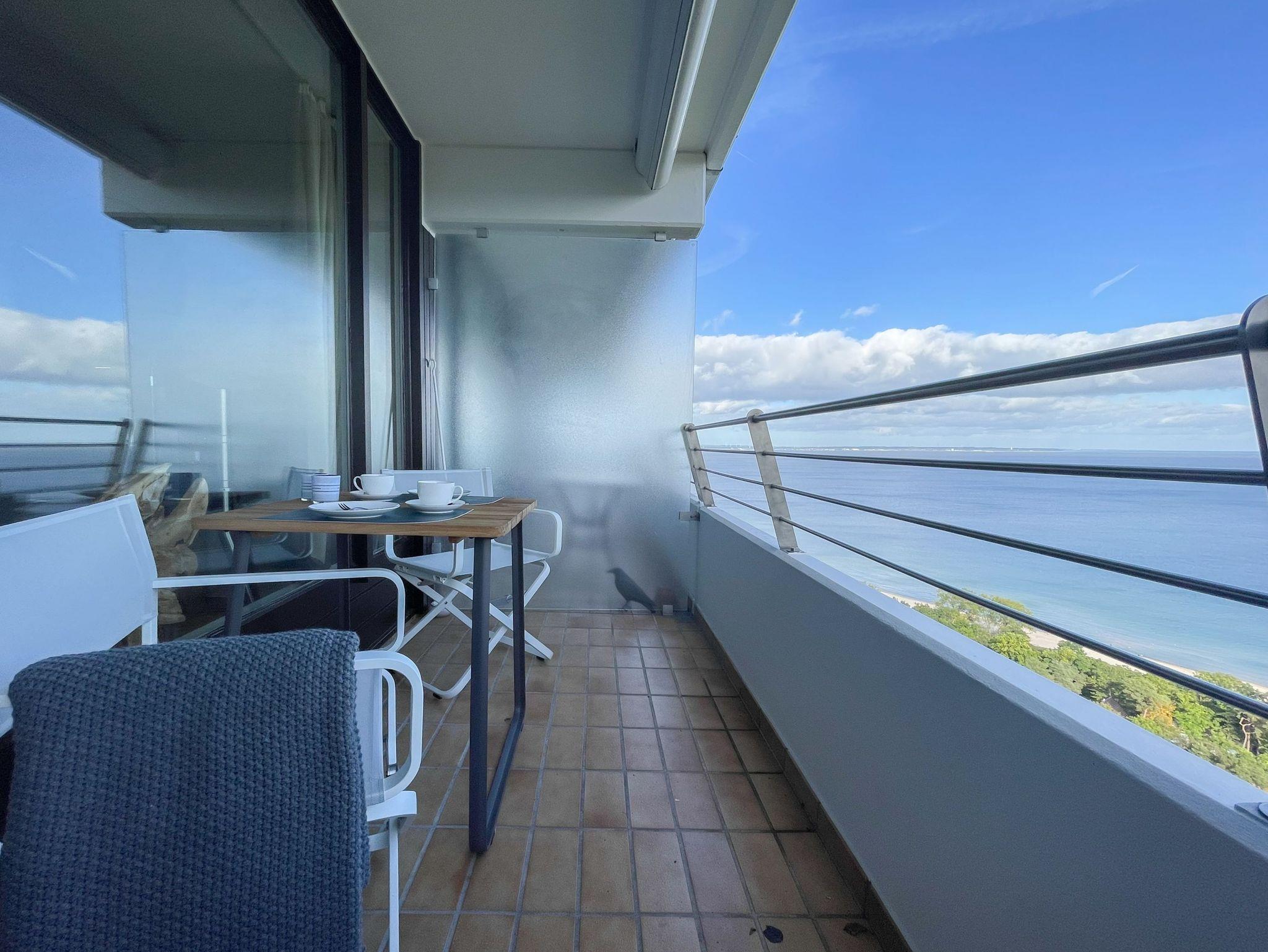 Aufwachen mit traumhaftem Ostseeblick und wohl fühlen in einem herrlichen Ambiente durch warme Farben, hochwertige Materialen und exklusivem Mobiliar. Zeitgemäßer Luxus in Perfektion! Das Einraum Studio ist mit einem Boxspringbett (160x200), einem gemütlichem Sofa und einem Esstisch mit 2 bequemen Ledersesseln eingerichtet. Die äußerst hochwertige Designküche in perfekter Ausstattung fügt sich wunderbar in den Wohnraum ein, ebenso die weiteren Einbauten, die ausreichend Platz für die Urlaubsgarderobe bieten. Genießen Sie das traumhafte Meerblickpanorama aus dem Studio oder vom Balkon, der mit Gartenmöbeln und einer elektrischen Markise ausgestattet ist und bei Dunkelheit die besondere Atmosphäre der beleuchteten Lübecker Bucht. Das moderne Bad verfügt über Waschtisch, Dusche, Föhn und WC sowie ausreichend Stauraum. Die Fensterfront ist mit Verdunkelungsvorhängen versehen. WLAN steht selbstverständlich zur kostenlosen Nutzung zur Verfügung.