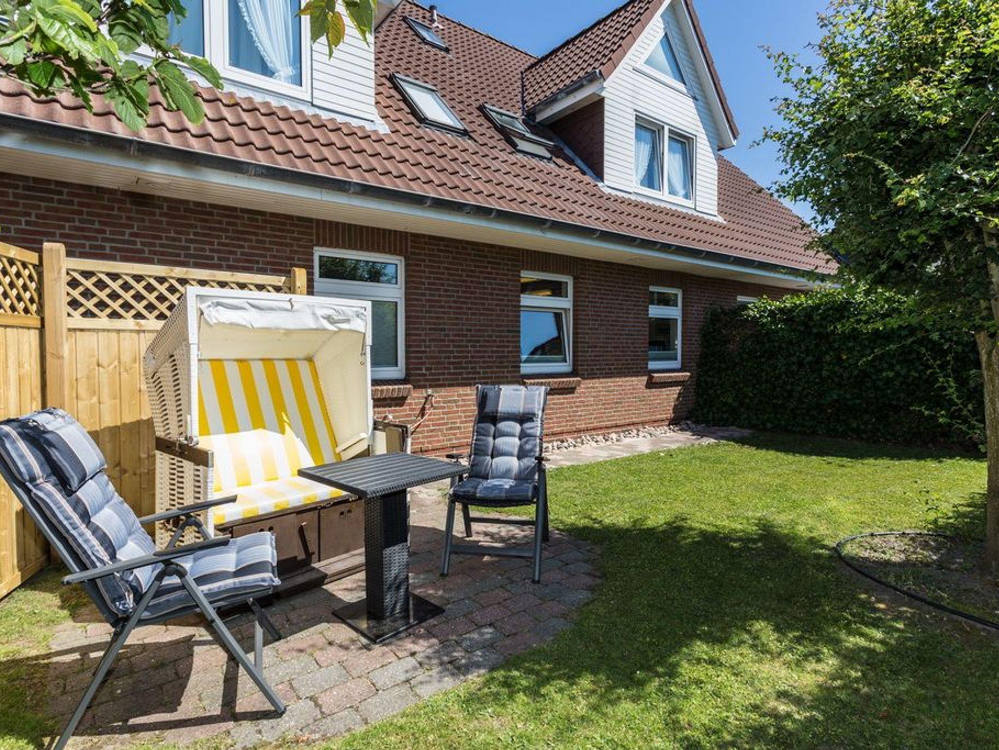 Moderne und geräumige 2-Zimmer-Ferienwohnung für 2-3 Personen, ca. 45m², bestehend aus Wohnzimmer mit Essplatz sowie Sitzgruppe, Flat-TV, Radio, Telefon und kostenfreiem W-Lan, einem separaten Schlafzimmer mit Doppelbett, Duschbad / WC. Die Küchenzeile ist zum Wohnraum hin offen und ist mit Geschirrspüler und Mikrowelle ausgestattet. Im Wohnraum befindet sich ein Wandklappbett. Waschmaschine sowie Trockner sind gemeinschaftlich auf der gleichen Ebene im Obergeschoß nutzbar. Ein Pkw-Stellplatz befindet sich vor dem Haus. Der gemeinschaftliche Außenbereich bietet einen Terrassenplatz mit Strandkorb und Gartenmöbeln, einen überdachten Sitzbereich, einen großzügigen Fahrradunterstand sowie Schränke für Ihre Golfbags. Tierhaltung ist gestattet und muss kostenpflichtig angmeldet werden. Bettwäsche und Handtücher sind zur Anreise aufgezogen.