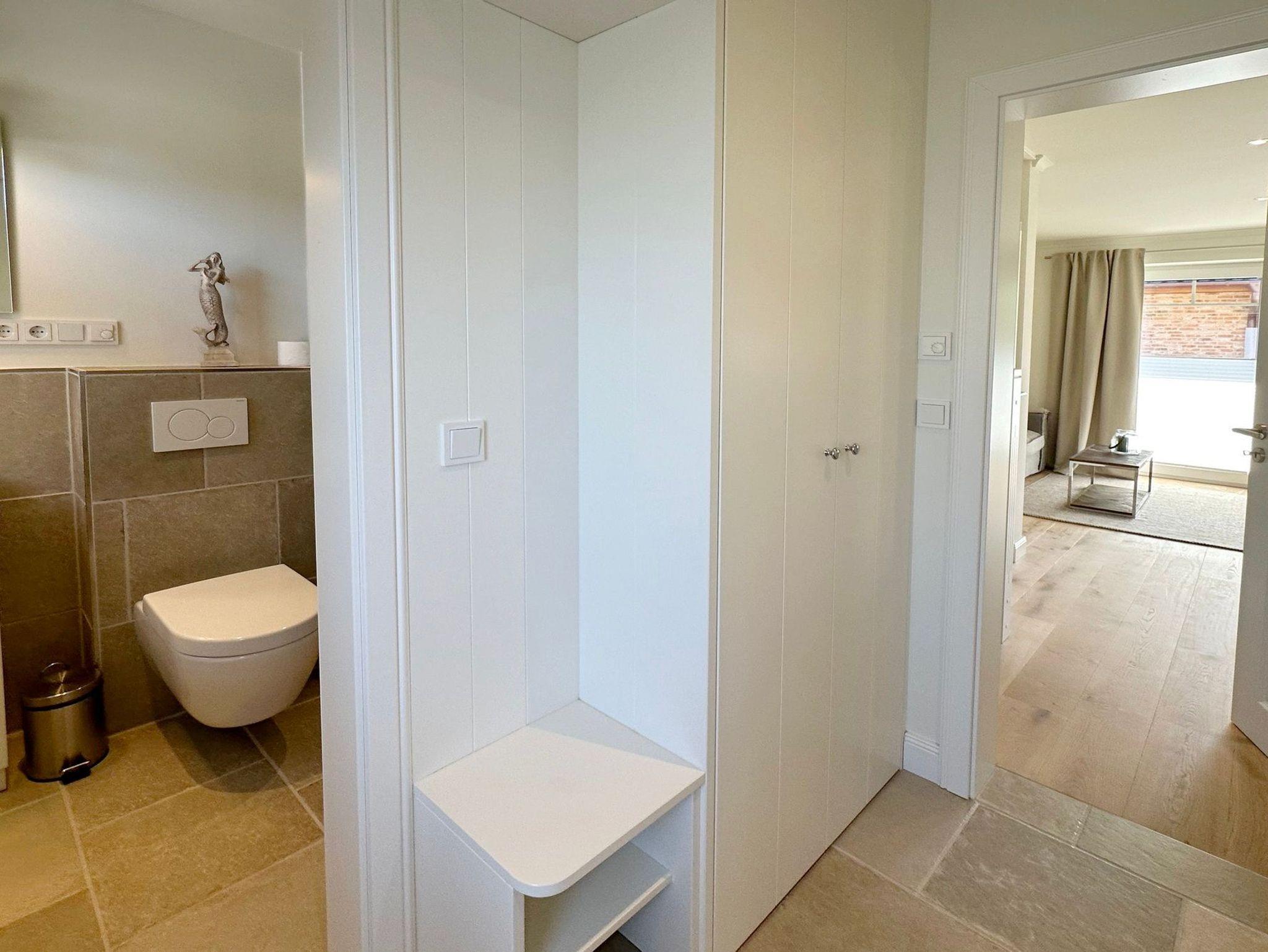 Das Ferienhaus Engels Hüs ist eine Doppelhaushälfte mit einer Nutzfläche von ca. 88m², die Platz für bis zu vier Personen bietet. Das Haus erstreckt sich über 2 Etagen, nämlich das Erdgeschoss und das Obergeschoss. Im Erdgeschoss befindet sich ein Wohnraum mit einem Flatscreen-TV, WLAN und einem Essbereich. Außerdem gibt es hier eine Küchenzeile mit einem Backofen und einer Mikrowelle, einem Induktionsherd, einer Geschirrspülmaschine und einer Nespressomaschine. Des Weiteren gibt es eine Terrasse in südlicher Ausrichtung mit Gartenmöbeln. Ein Badezimmer mit Dusche und WC sowie eine Waschmaschine sind ebenfalls im Erdgeschoss vorhanden.