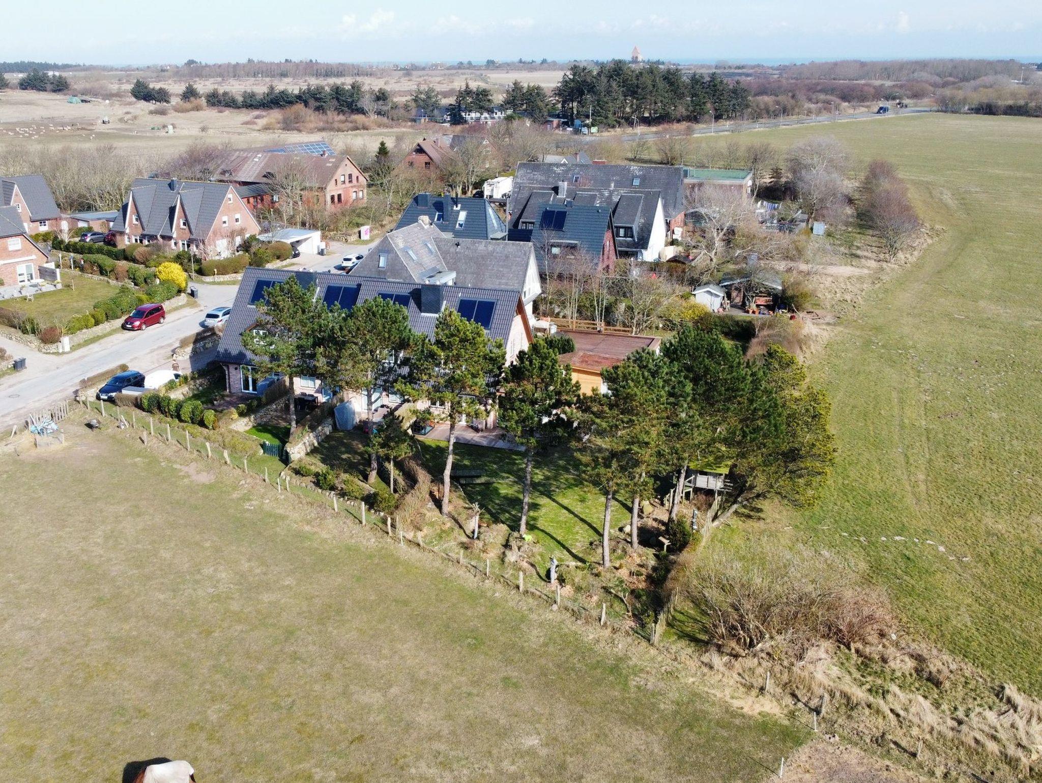 In zentraler Insellage mit Feldblick haben wir diese Mittehausscheibe für Ihren Urlaub auf Sylt im Angebot. Im Erdgeschoss befindet sich der Wohn-Essbereich mit offener Küche, Flur und ein kleines Duschbad.