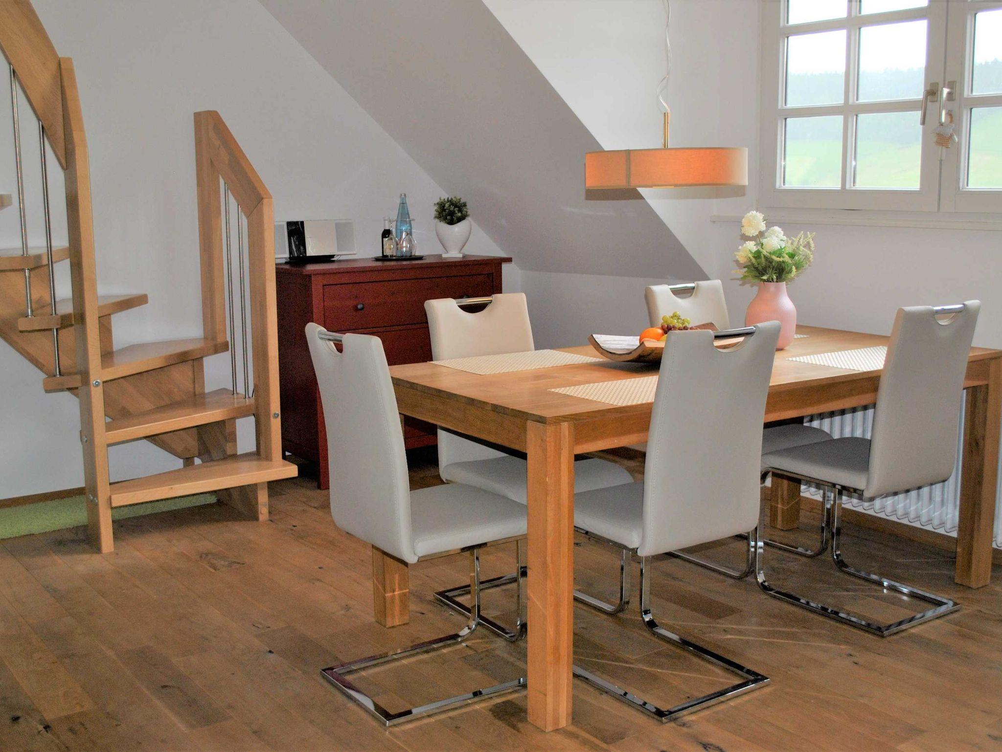 Schöne, gemütliche Ferienwohung mit 80qm für 2 - 4 Personen. Optional 1-2 weitere Personen auf einem Schlafsofa im Wohnbereich. Die Ferienwohnung verfügt über einen Balkon, eine Küchenzeile, Wohn- & Essbereich sowie über 2 getrennte Schlafzimmer im Obergeschoss.