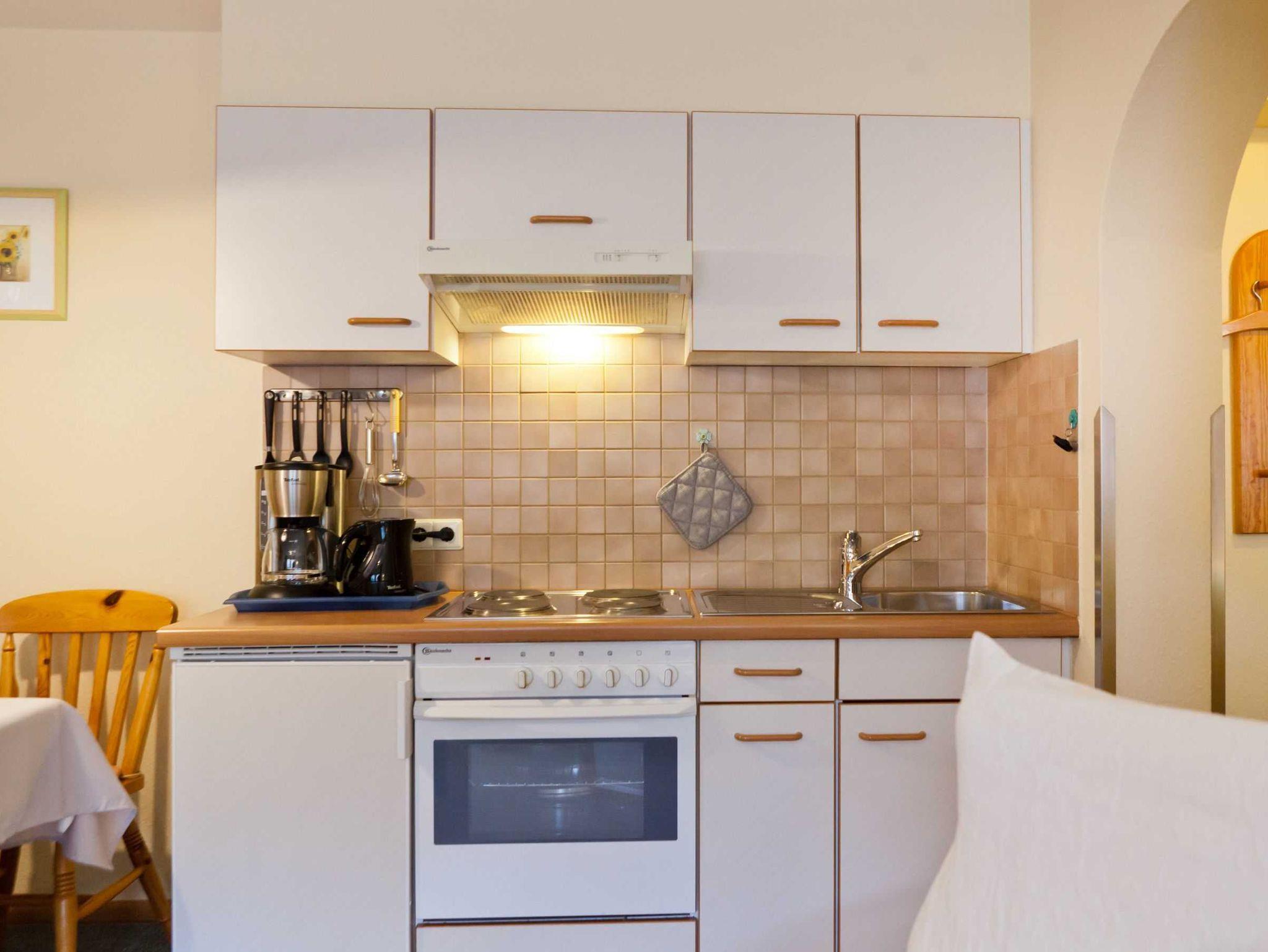 • Komplett eingerichtete Küche: Cerankochfeld Herd, Backofen, Filterkaffeemaschine, Wasserkocher, Toaster, Mikrowelle, Mixer, …
