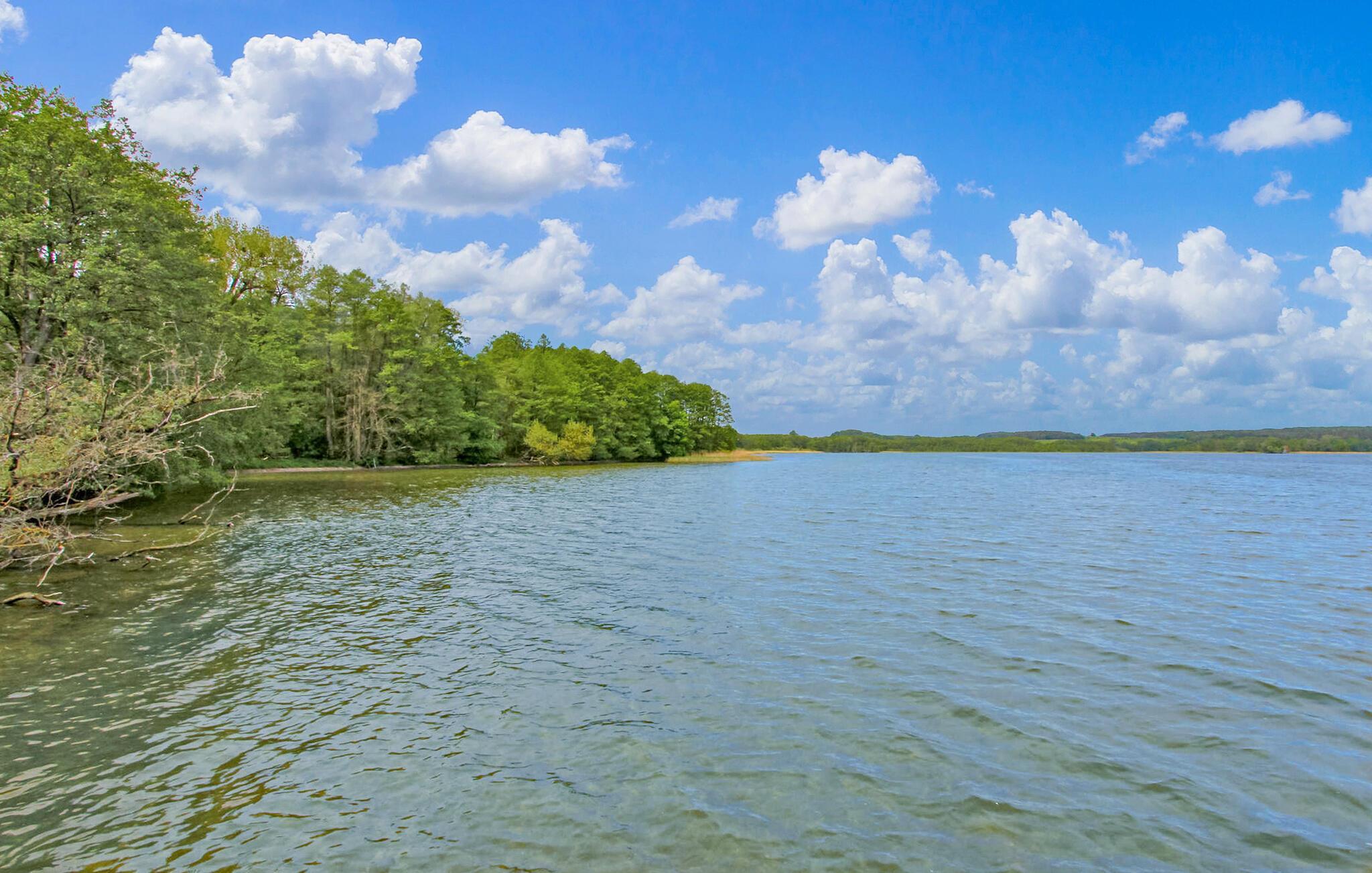 Semesterhuset, nybyggt 2019 i timmerstuga stil, ligger på en 500 m² stor och separat fritidstomt i en liten semesterhusbebyggelse bort från byn Groß Nemerow i distriktet Tollenseheim, bara ca 100 m fågelvägen från sjön Tollensesee. Den naturliga badstranden och bryggan kan nås på ca 500 m, en golfbana på ca 300 m. Semesterhuset är modernt utrustat och sträcker sig över 2 bostadsplan. På bottenvåningen finns vardagsrummet (stoppad sittgrupp, matbord, LED-TV, radio, luftkonditionering) med pentry i öppen planlösning (elektrisk spis med ugn, diskmaskin, mikrovågsugn, kylskåp med frysfack, diverse köksmaskiner), 1 sovrum (dubbelsäng, TV) och ett badrum (dusch/toalett, tvättmaskin, hårtork). På övervåningen finns ytterligare 2 sovrum, alla med dubbelsäng (1 x med möblerad balkong), samt en liten gäst-wc. Uppvärmning sker med elvärme och en braskamin i vardagsrummet (första leveransen av ved ingår), carport och 1 extra parkeringsplats, cykelförråd (laddningsmöjligheter för e-cyklar finns), möblerad terrass, solstolar och grillmöjligheter. Totalt 5 cyklar (inklusive 2 barncyklar) finns tillgängliga gratis. En barnstol och en barnsäng kan tillhandahållas gratis för små barn.andra avgiftsbelagda erbjudanden på plats:- Jolle för max. 5 pers. utan motor 15 EUR/dag eller 60 EUR/vistelse- 2 stand-up paddleboards (30 EUR/vistelse vardera)- Grill Kota för 12-15 pers. Sängkläder och handdukar kan hyras eller tas med. I totalpriset ingår slutstädning, el, vatten och W-LAN. För ett andra husdjur tillkommer en kostnad på 5,00 EUR per natt.