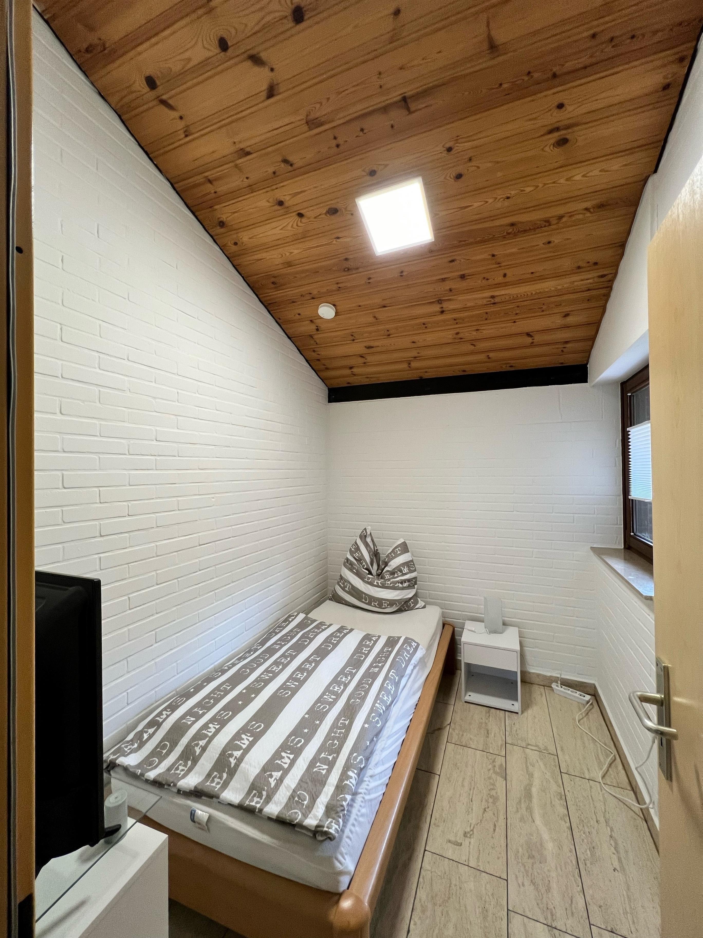 Unser ebenerdiges Ferienhaus verfügt über eine Wohnfläche von ca. 95 qm und ist u.a. ausgestattet mit Fussbodenheizung, es ist voll möbliert und bietet Platz für max. 5 Personen plus Kleinkind bis 2 Jahre. An das grosse Wohnzimmer (Radio und SAT-TV vorhanden, Innenkamin) schließt sich ein offener Küchenbereich (mit neuer Spülmaschine, 4-Platten-Herd mit Backofen, Mikrowelle, Kühlschrank mit Gefrierfach, Kaffeemaschine, Wasserkocher, Toaster) an. Im Haus befinden sich 3 Schlafräume, aufgeteilt mit Doppelbett, franz. Bett (1,40 m breit) und Einzelbett. Die Schlafräume mit dem franz. Bett und dem Einzelbett haben zusätzlich SAT-TV. Ausserdem bieten wir für unsere Gäste kostenfrei W-Lan an. Das Badezimmer wurde 2017 renoviert und verfügt über Dusche/WC. Waschmaschine und Trockner sind vorhanden.Ein Kinderreisebett mit Matratze steht nach Absprache kostenfrei zur Verfügung. Geniessen Sie die Abenden auf unseren 2 Terrassen und auf der Liegewiese. Der Aussenkamin ist sogar als Grill nutzbar. Am Haus befindet sich ein PKW-Stellplatz.