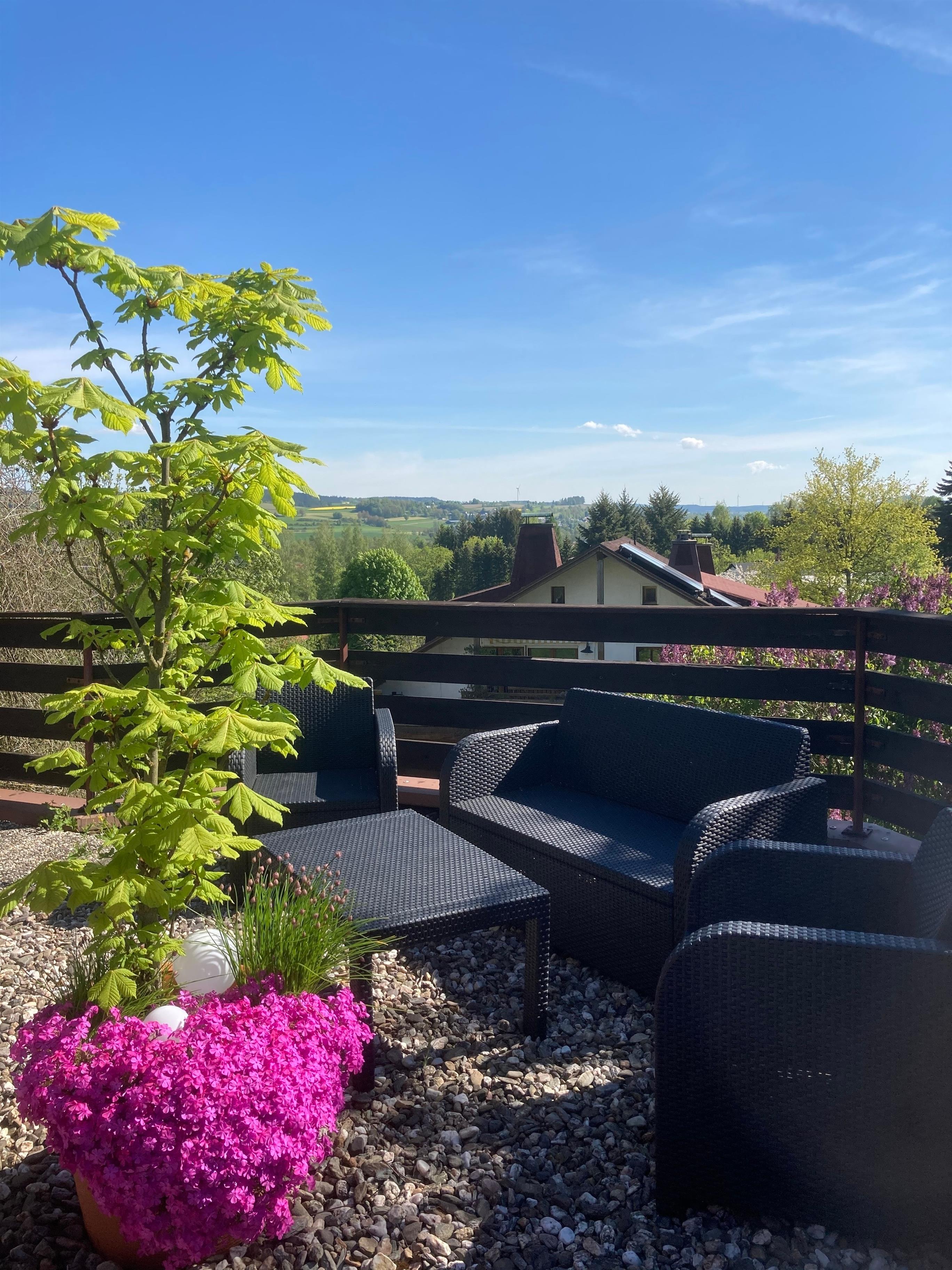 Ein toller Blick über die Region ergibt sich vom großen Balkon aus.