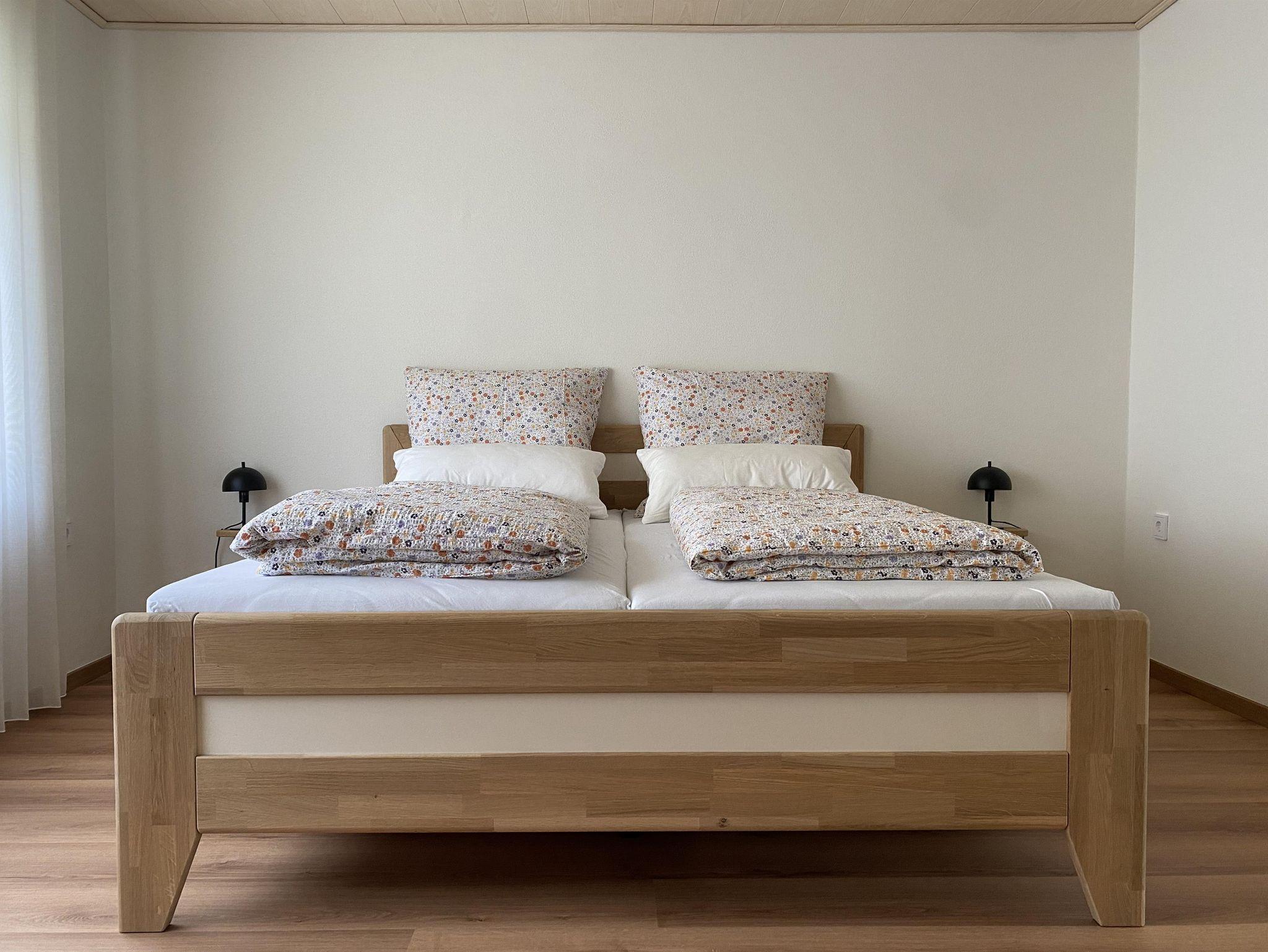 Die komplett neu renovierte Ferienwohnung bietet eine moderne Einrichtung und Ausstattung. Hier finden Sie auf 90 qm-Wohnfläche viel Platz um sich im Urlaub zu erholen. Von der sep. Küche mit Geschirrspülmaschine und vom Wohnzimmer mit Ledersofa und Sesseln haben Sie einen direkten Zugang zum großzügigen Balkon. Hier können Sie entspannen und den traumhaften Waldblick genießen. Zusätzlich verfügt die Ferienwohnung über ein sep. Doppelschlafzimmer mit 2 Einzelbetten und ein Doppelschlafzimmer mit Doppelbett und einem direkten Durchgang zum Wohnzimmer. Im Badezimmer finden Sie eine ebenerdige Dusche.
