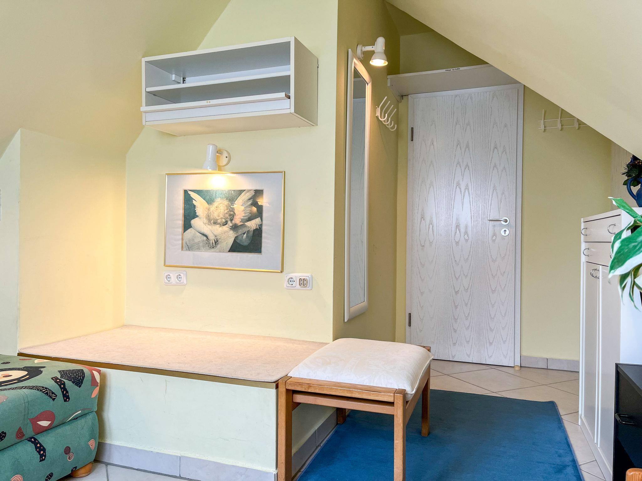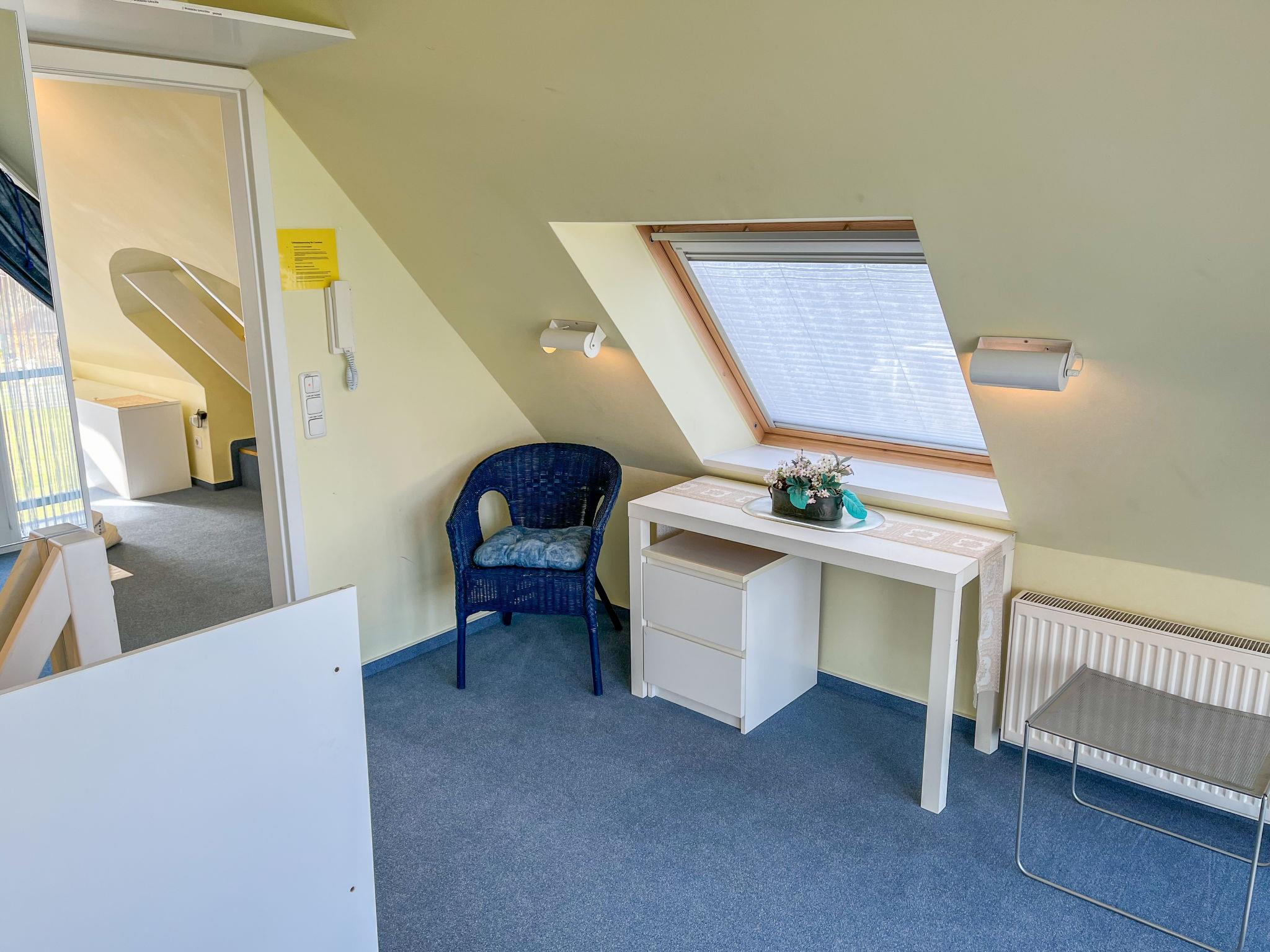 "Eike", 5-room apartment 150 m2 on 2 levels on 1st floor. Practical furnishings: living/sleeping room with sloping ceilings with 1 double bed, dining table, satellite TV, radio and CD-player. Exit to the balcony. Living/dining room with sloping ceilings with 1 double bed, dining nook, kitchen corner, satellite TV and hi-fi system. Exit to the balcony. 1 room with sloping ceilings with 1 double bed and satellite TV. 1 room with sloping ceilings with 2 sofabeds and satellite TV. Kitchenette (2 hot plates, dishwasher, toaster, kettle, microwave, electric coffee machine). 2 baths/WC. Top floor: living room with sloping ceilings with satellite TV. Open alcove with 2 sleeping facilities. Kitchenette (2 hot plates, dishwasher, toaster, kettle, microwave, electric coffee machine). Shower/WC. Gas heating. Carpet. Balcony. Balcony furniture. Facilities: children's high chair, baby cot. Internet (WiFi, free). Parking (3 cars) at the house. Please note: non-smokers only. Smoke alarm. No internal connecting door between the separated properties. Please note: This apartment consists of a total of 3 independent living units. Instead of an enclosed bedroom, some sleeping areas are located in an open-plan area (gallery, alcove, etc.).