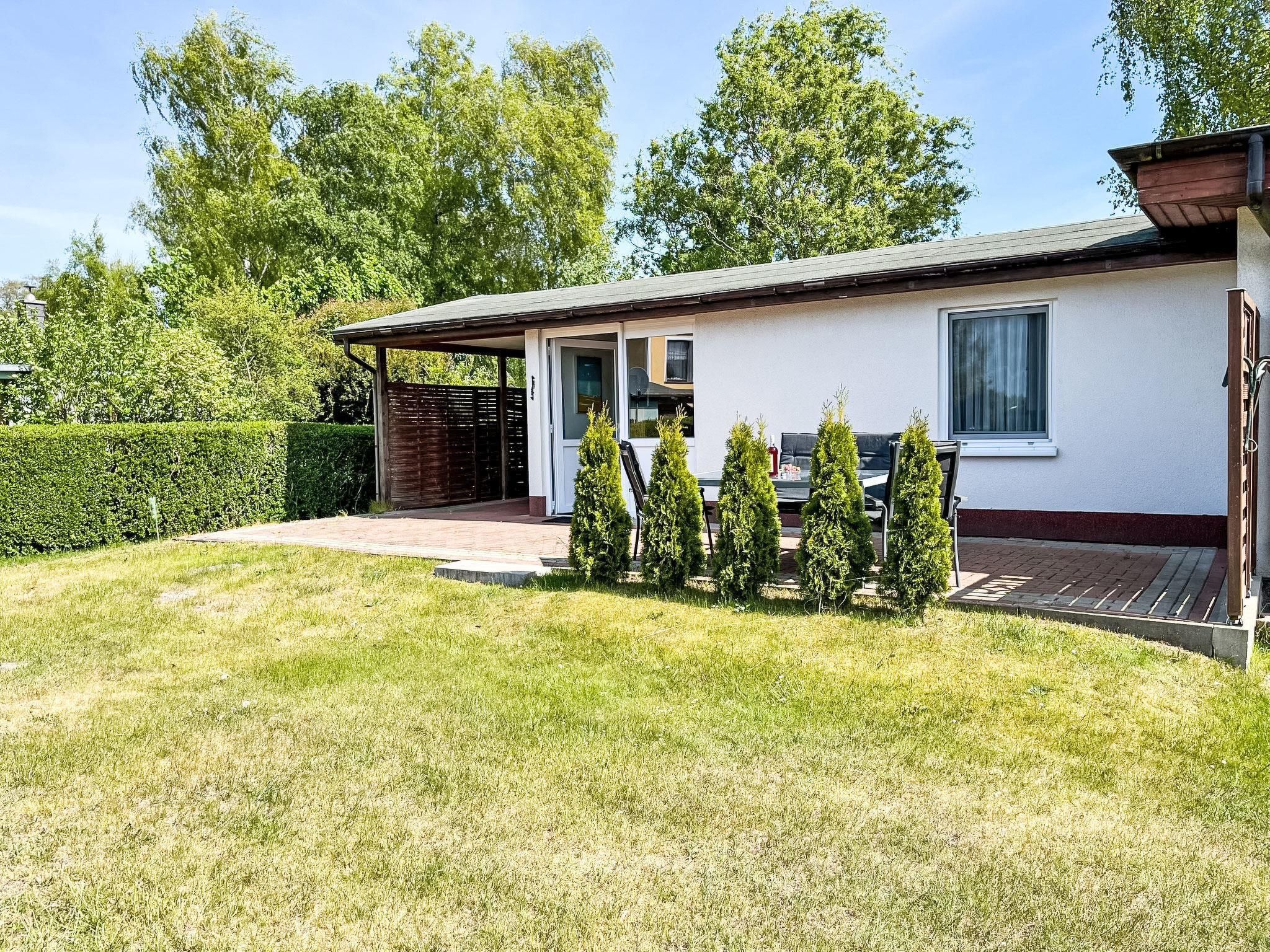 Trassenheide: Cosy bungalow. On the outskirts, 2 km from the sea, 2 km from the beach. Supermarket 300 m, restaurant 350 m, bakery, café 300 m, bicycle rental 700 m, bus stop 500 m, railway station 1.5 km.