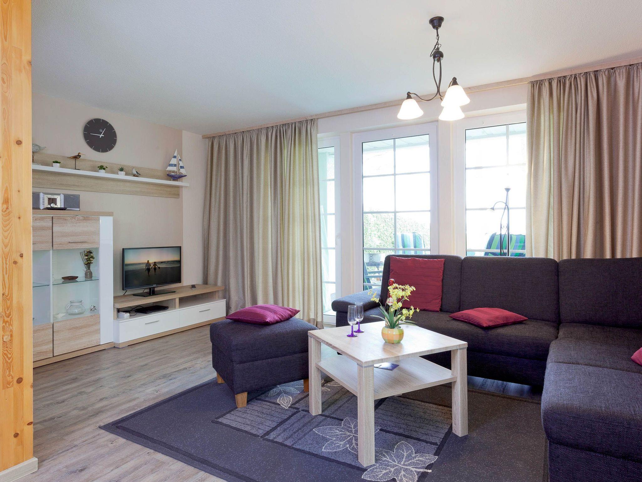Im Erdgeschoss können Sie es sich zu jeder Zeit im großzügigen Wohnbereich mit Sitzgarnitur und Flat-TV gemütlich machen.