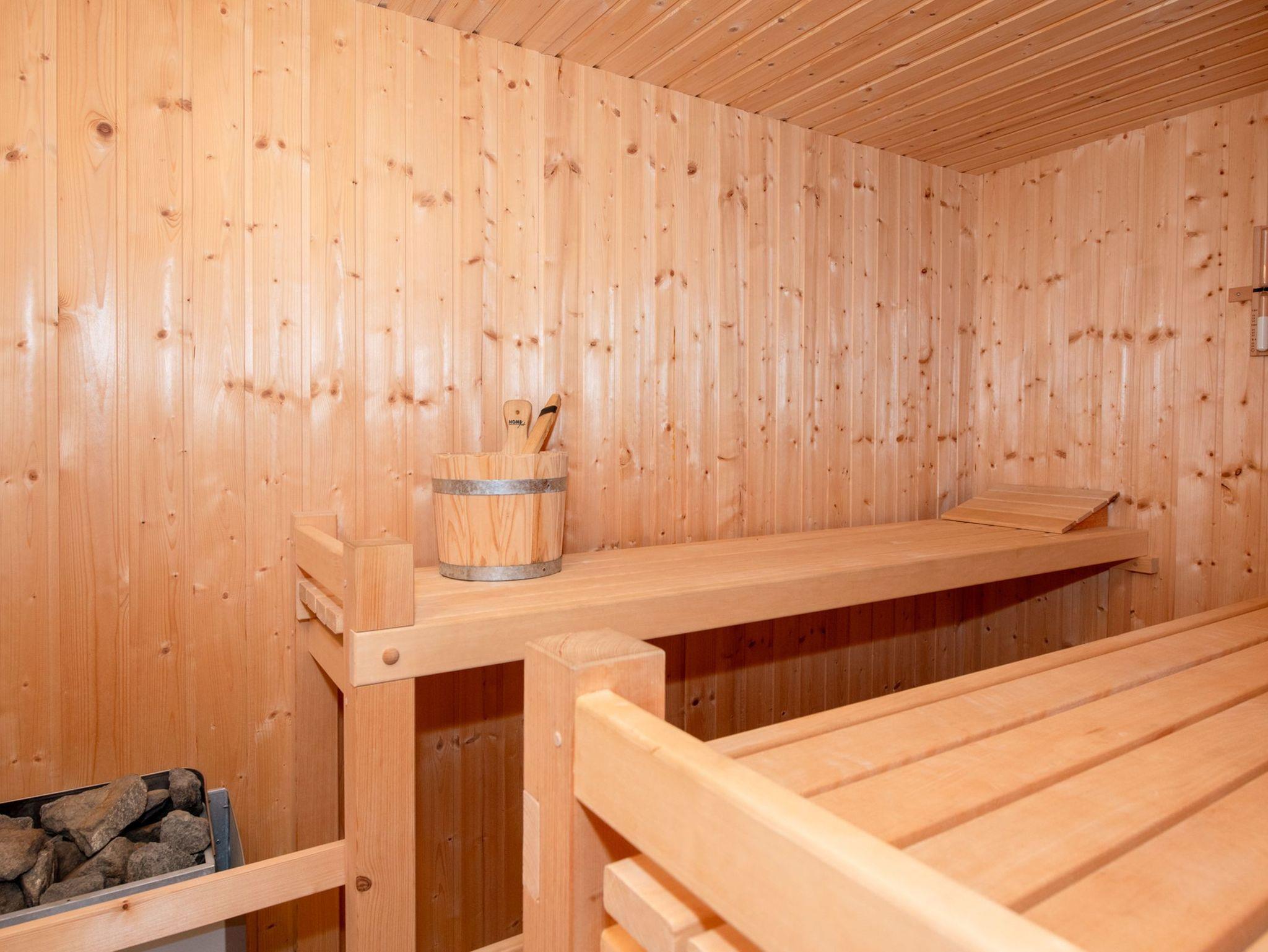 Insgesamt stehen drei separate Schlafzimmer mit Echtholzmöbeln und jeweils einem Doppelbett zur Verfügung. Zwei moderne Badezimmer eines davon mit Sauna sorgen für Komfort und ausreichend Platz für alle Gäste.