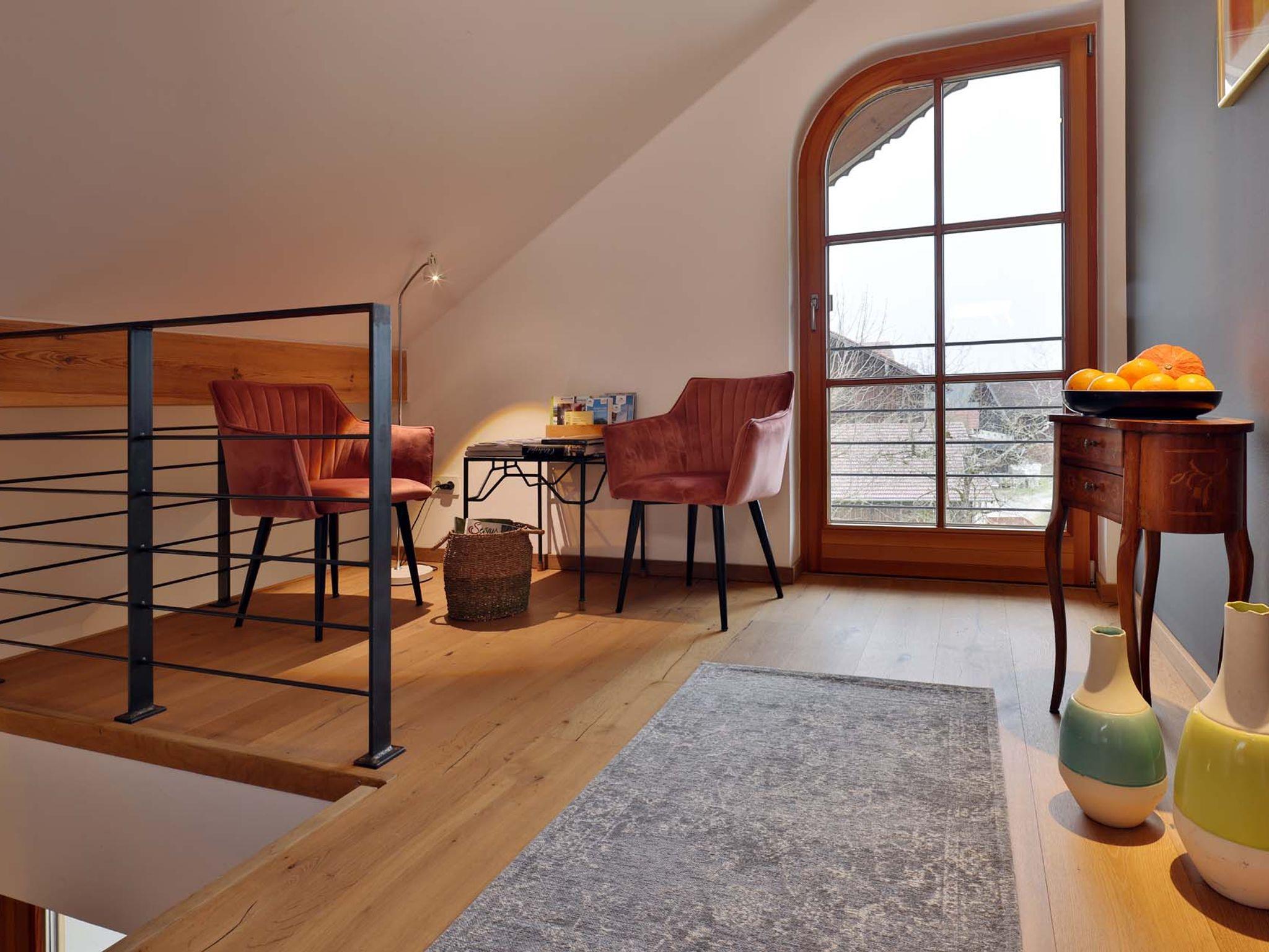 Wohnen Sie in unserer komfortablen Ferienwohnung, die sich über 64 Quadratmeter und zwei Etagen erstreckt und ideal für zwei Personen konzipiert ist. Das Apartment besticht durch ihre hochwertige Ausstattung und den großzügigen Wohnbereich. Eine Treppe führt Sie in das obere Stockwerk, wo das Schlafzimmer mit einer einladenen Galerie zum Entspannen und Relaxen auf Sie wartet.