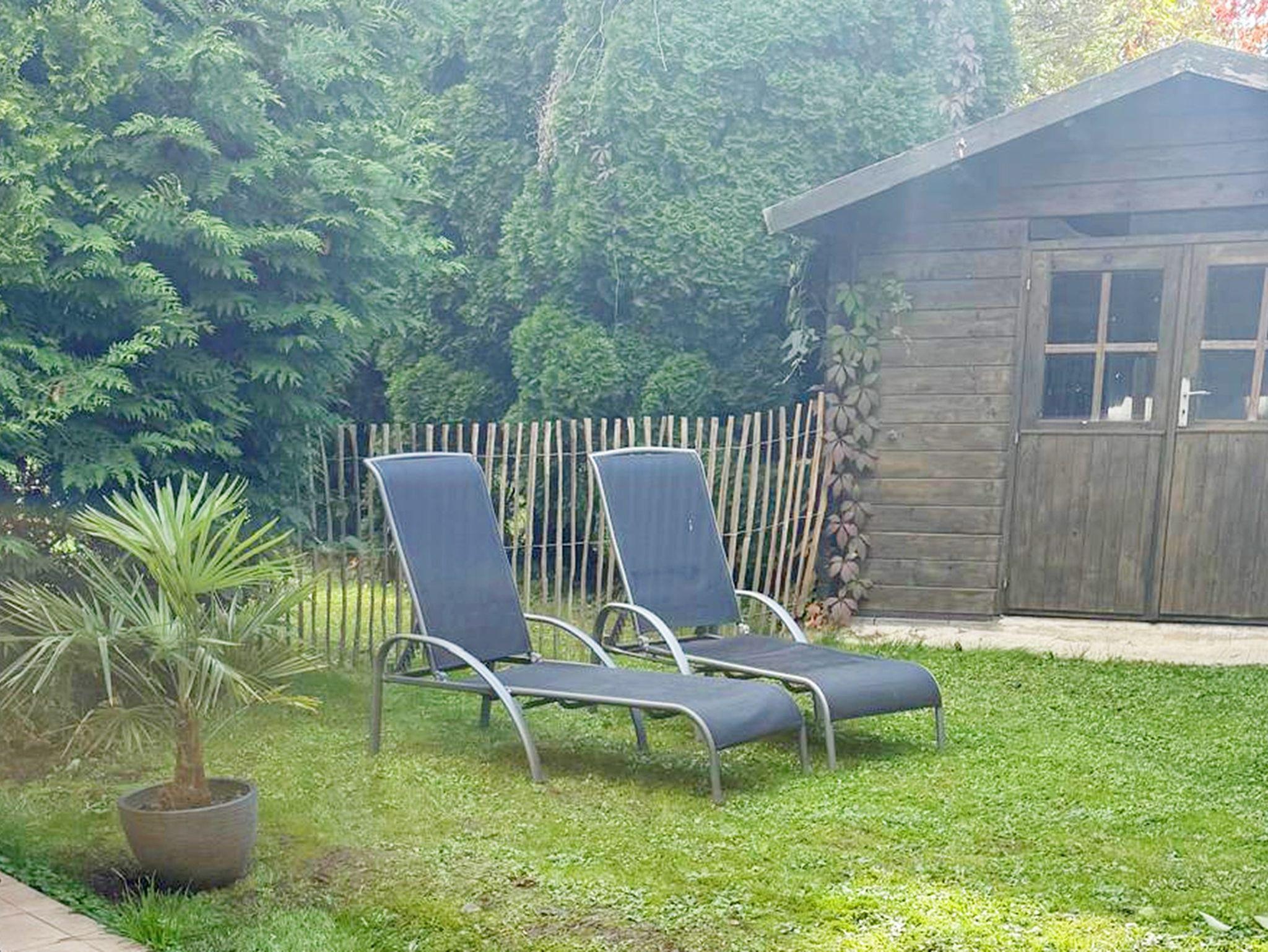… inklusive einem eigenen kleinen Garten mit Lounge und Liegestühlen.