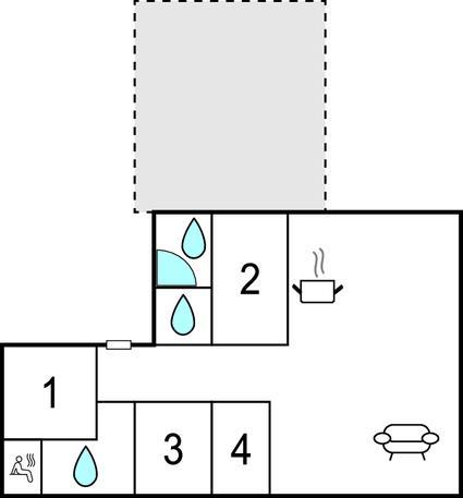 Badrum (nr. 1) - WC: Varmt och kallt vatten. Dusch