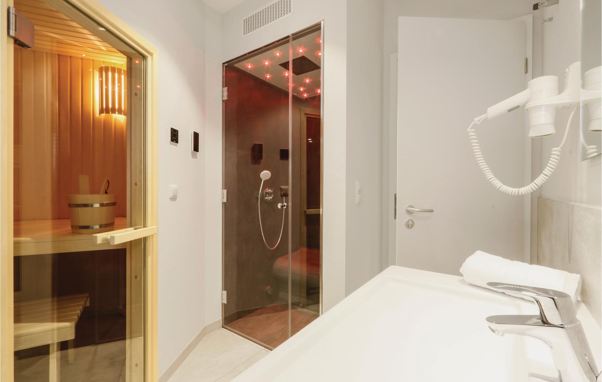 Lägenheten är inredd i en stilfull, högkvalitativ och modern stil. En särskild höjdpunkt är badrummet, din personliga lilla wellnessavdelning med bastu och ångbad med integrerad regndusch. Feelgood-programmet fortsätter i vardagsrummet, där de fladdrande lågorna från bioetanolspisen ger rummet ett särskilt mysigt ljus. Soffan kan omvandlas till två bekväma sovplatser med några enkla handgrepp. Naturligtvis är semesterlägenheten på BeachBay också utrustad med ett modernt underhållningssystem inklusive Blu-Ray, musikanläggning och TV. För kaffeälskare finns en Nespressomaskin i köket (ta med egna kapslar), samt en termos och ett handfilter för att brygga eget kaffe om ni föredrar det klassiska filterkaffet.