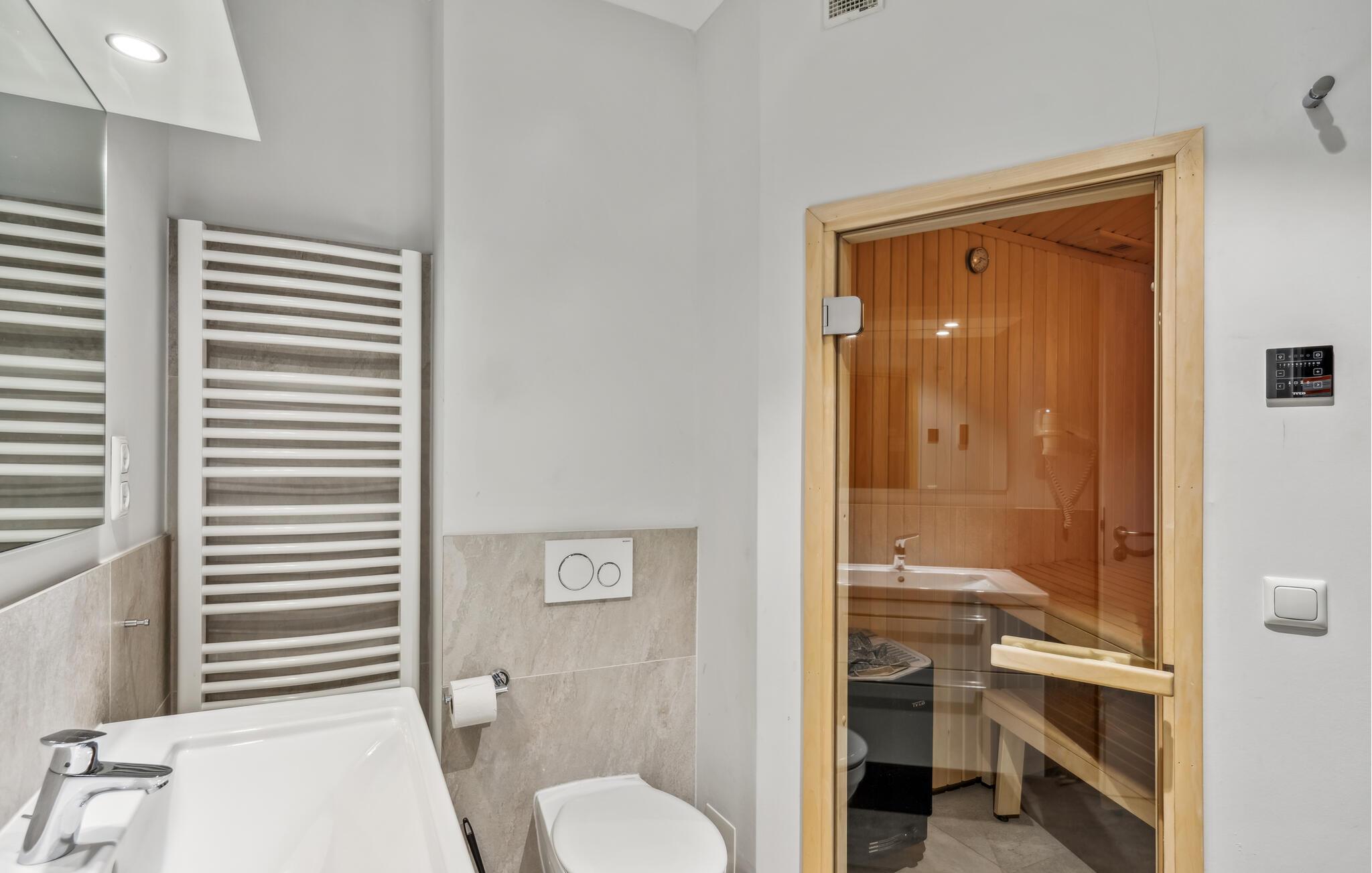 Lägenheten är elegant, möblerad med hög standard och modern. En speciell höjdpunkt är badrummet, din personliga lilla wellnessavdelning med bastu och ångbad med integrerad regndusch. Feel-good-programmet fortsätter i vardagsrummet, där de fladdrande lågorna från bioetanolspisen badar rummet i ett särskilt mysigt ljus. Soffan kan omvandlas till två bekväma sovplatser med några enkla handgrepp.