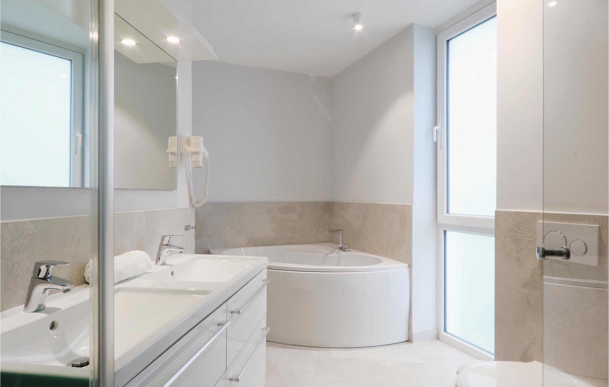 Lägenheten är stilfullt, högkvalitativt och modernt inredd. En särskild höjdpunkt är badrummet, din personliga lilla wellnessavdelning med bastu, bubbelpool och ångbad med integrerad dubbel regndusch. Feel-good-programmet fortsätter i vardagsrummet, där den elektriska eldstaden ger dig en fantastisk atmosfär med en knapptryckning tack vare sin realistiska 3D-look. Belysningen kan också väljas för att passa stämningen. Soffan kan omvandlas till två bekväma sovplatser med bara några enkla handgrepp.