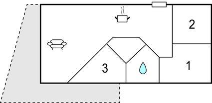 Badrum (nr. 1) - WC: Varmt och kallt vatten. Dusch