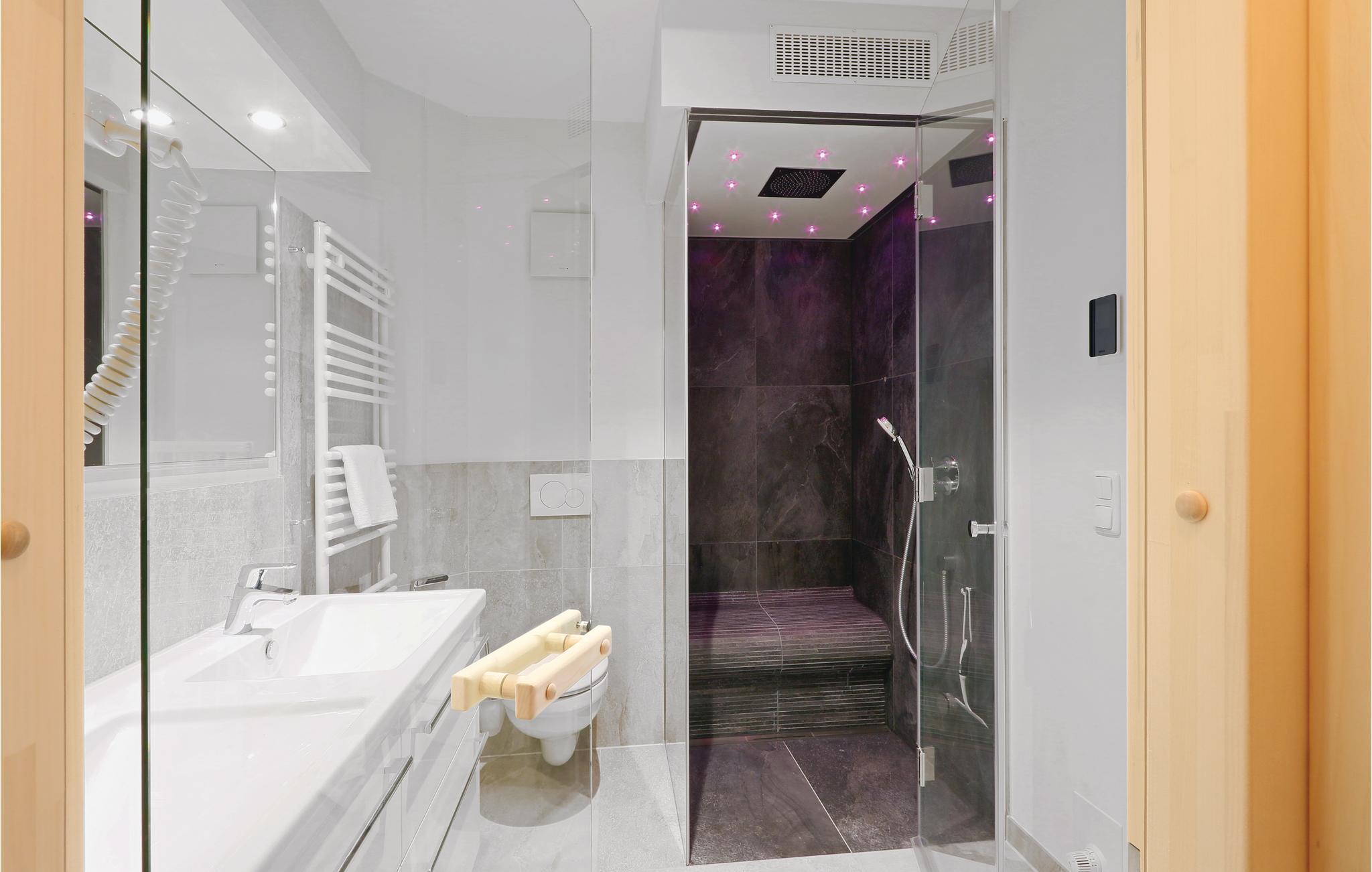 Badrummet är din privata wellnessavdelning. Här kan du mysa i den infraröda bastun eller koppla av i ångbadet med regndusch. Semesterlägenheten har också ett modernt underhållningssystem med Blu-Ray-spelare, två platt-TV-apparater och en musikanläggning med MP3-anslutning.