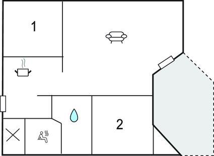 Det lilla semesterhuset är idealiskt för en familjesemester. Det finns tillräckligt med utrymme för upp till 4 vuxna och 2 barn. Det finns två separata sovrum med en dubbelsäng respektive två enkelsängar. Det finns ytterligare två sängar i vardagsrummet, där barnen kan göra det bekvämt för sig.