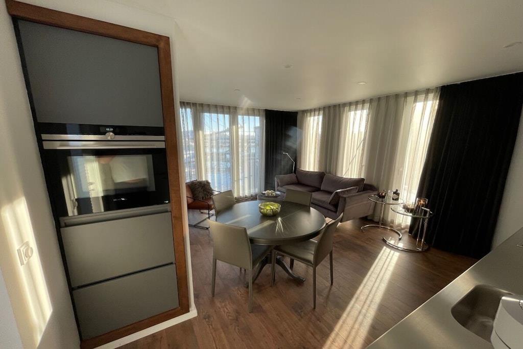 Fußbodenheizung, komplette Küche mit Backofen, Spülmaschine, Umweltfreundliche Bio Kläranlage, Dachterrasse mit Grill und Sitzmöbeln, Sonnenschutz, Minibar Getränke Service, Brötchenservice im Hafen, Ausgestattet für 4 Personen mit Dachterrasse mit dem Ausblick über die Trave und Ostsee