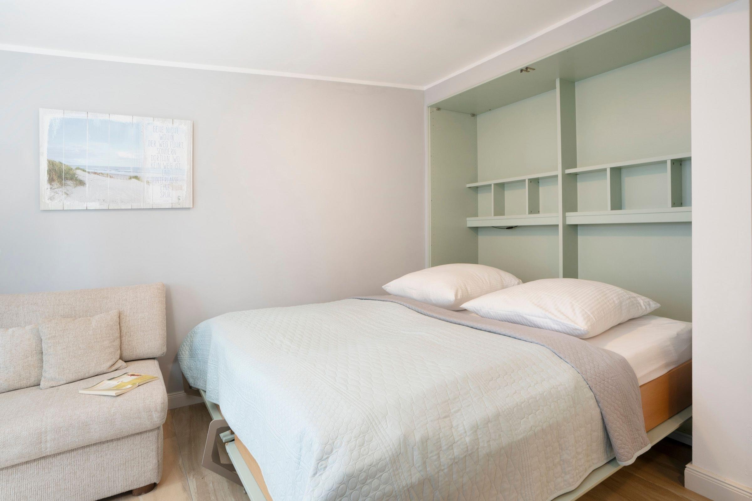 Schlafzimmer 1 (EG): 1 Doppelbett/Schrankbett (2x 90x200 cm), Kleiderschrank, Platz für Kinderreisebett