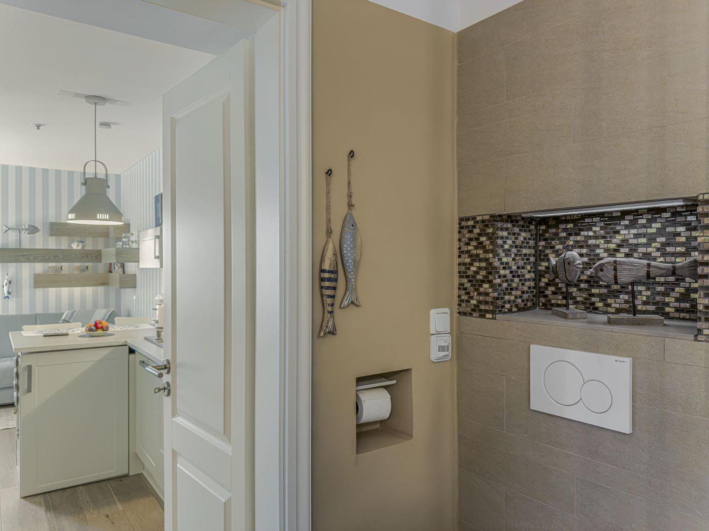 Dieses moderne 1-Zimmer-Apartment im 21. Obergeschoss bietet auf ca. 19 m² alles für einen komfortablen Aufenthalt. Der kombinierte Wohn- und Schlafbereich ist mit einer hochwertigen Schlafcouch ausgestattet, die sich durch Lattenrost und Matratze (1,40 m) auszeichnet. Die gut ausgestattete Einbauküche mit Ceranfeld, Geschirrspüler und Mikrowelle sorgt für Ihre Selbstversorgung. Genießen Sie den Panoramablick auf die Trave bis nach Mecklenburg und nutzen Sie WLAN sowie Kabel-TV für Ihre Unterhaltung. Im Haus stehen Restaurant, Bars, Schwimmbad und Sauna (gegen Gebühr) zur Verfügung. Der Strand ist direkt vor der Tür, und ein Tiefgaragenstellplatz ist inklusive.