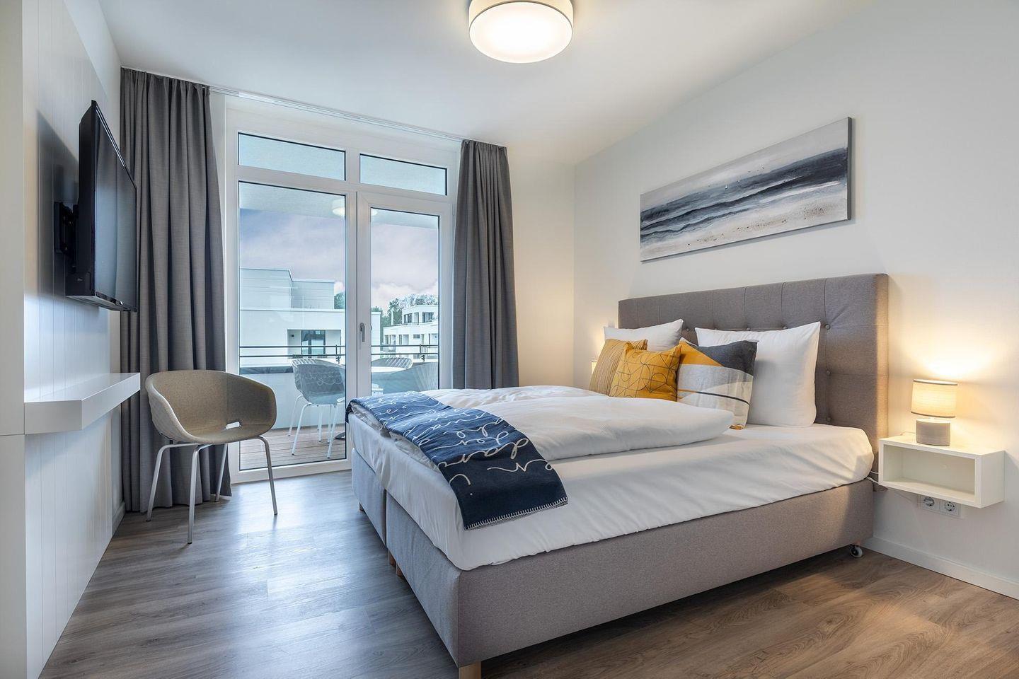 Das Apartment überzeugt durch seine helle, moderne Gestaltung und eine hochwertige Ausstattung. Fußbodenheizung, sonnenschutzverglaste, teilweise bodentiefe Fenster sowie kostenfreies WLAN sorgen für Komfort zu jeder Jahreszeit.