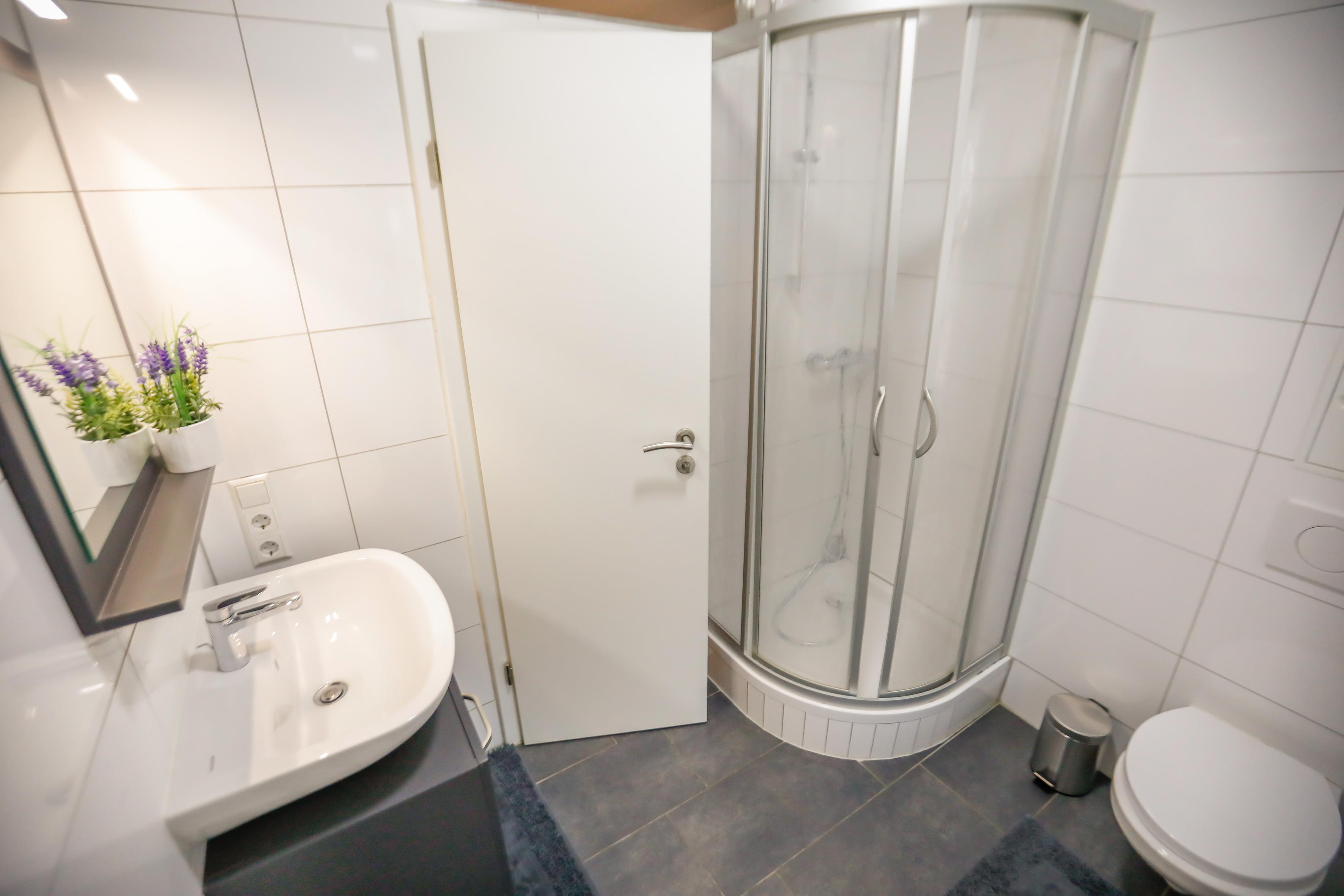 Die Wohnungen wurden im Jahr 2021 komplett renoviert und neu eingerichtet. Der Eingangsbereich empfängt Sie mit einer Garderobe und einer Schuhbank. Stärken Sie sich nach Ihren Tagesausflügen in der neu, voll ausgestatteten Einbauküche (inklusive Kühlschrank und Gefrierfach, Backofen, Ceranfeld, Spülmaschine, Mikrowelle, Wasserkocher, Kaffeemaschine (Tassimo), Besteck und Geschirr, Kochutensilien) und erfrischen Sie sich in den neu gestalteten Badezimmern. Hier stehen Ihnen jeweils Dusche mit Kabine & WC zur Verfügung.