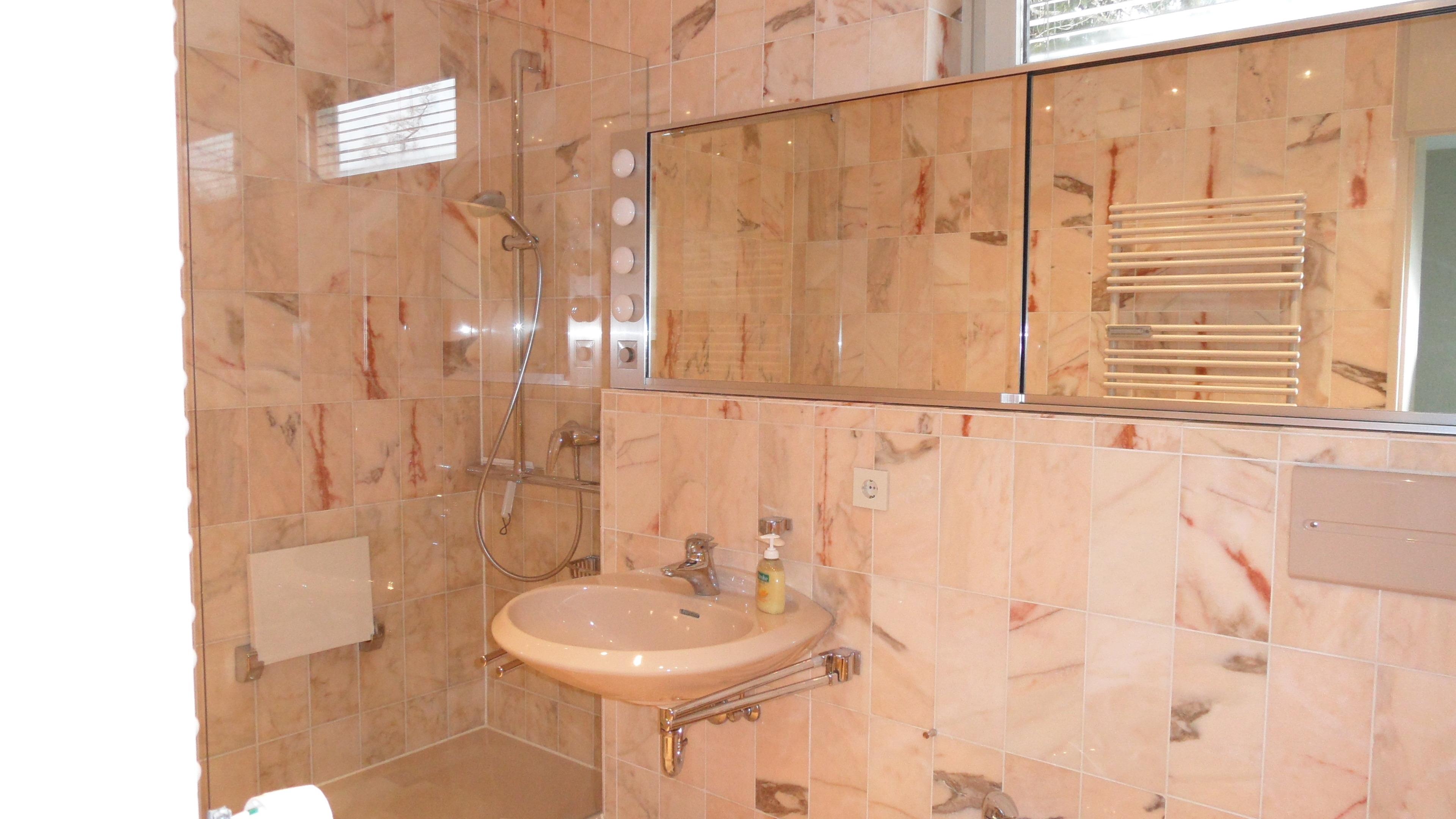 Sie gliedert sich im 2. Obergeschoss, das Sie bequem mit dem Aufzug erreichen, in einen Wohn- Essraum (35 qm), ein Schlafzimmer (9 qm) mit angrenzendem großen Bad mit Dusche und WC, eine Küche und ein Gäste-WC. Der Zugang zum Schlafzimmer führt Sie durch das großzügige Ankleidezimmer.