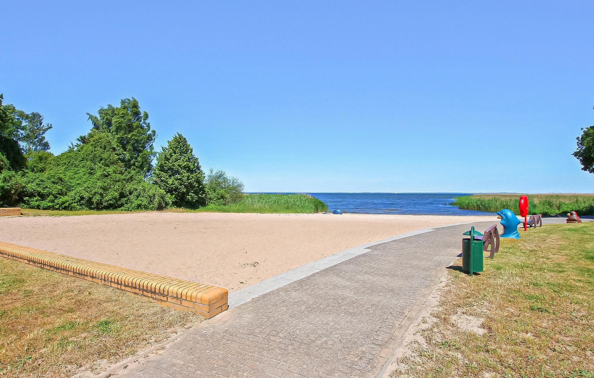 Semesterhuset ligger separat på ägarens 1300 kvadratmeter stora bostadsfastighet i ett lugnt läge i utkanten av byn och skogen. Stranden vid Szczecin-lagunen ligger ca 600 meter bort. Den är utrustad med: Vardagsrum (stoppade möbler, TV, radio), kokvrå i öppen planlösning med skafferi (elektrisk spis, kylskåp med frysfack, mikrovågsugn, matbord, diverse köksutrustning), sovrum via trappa (dubbelsäng, krybbsäng), dusch/toalett, centralvärme. Det finns en möblerad terrass eller sittgrupp på den välskötta och lugna trädgårdstomten, grill, cykelrum och parkeringsplats. Ingår i det totala priset: Sängkläder, handdukar, vatten- och energiförbrukning, slutstädning. Betalas på plats: Turistskatt. Husdjur är inte tillåtna i detta boende.